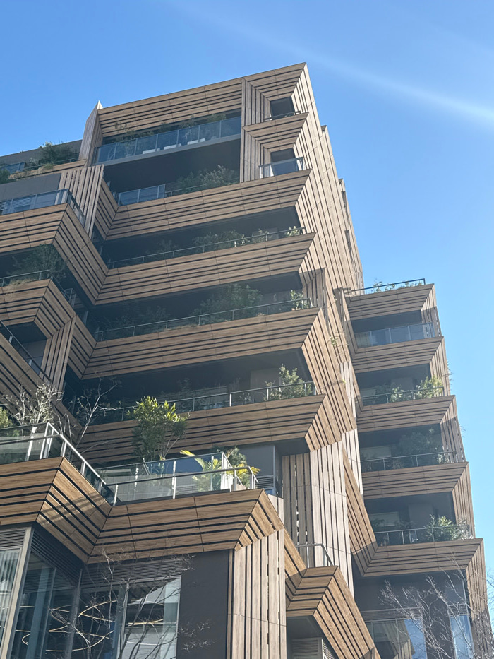 This image depicts a segment of a modern, multi-story building in Shibuya Ward, Tokyo, Japan, consistent with the architectural style of structures like the Shibuya Parco Park Tower. The building's fa…read more
