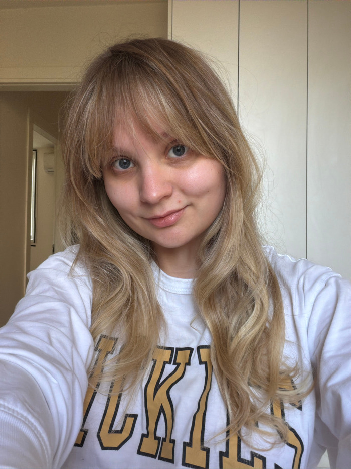 An indoor scene in Tel-Aviv, Israel, depicts a light-skinned female individual. She possesses long, wavy blonde hair with bangs, blue eyes, and a slight smile while looking directly at the camera. She…read more