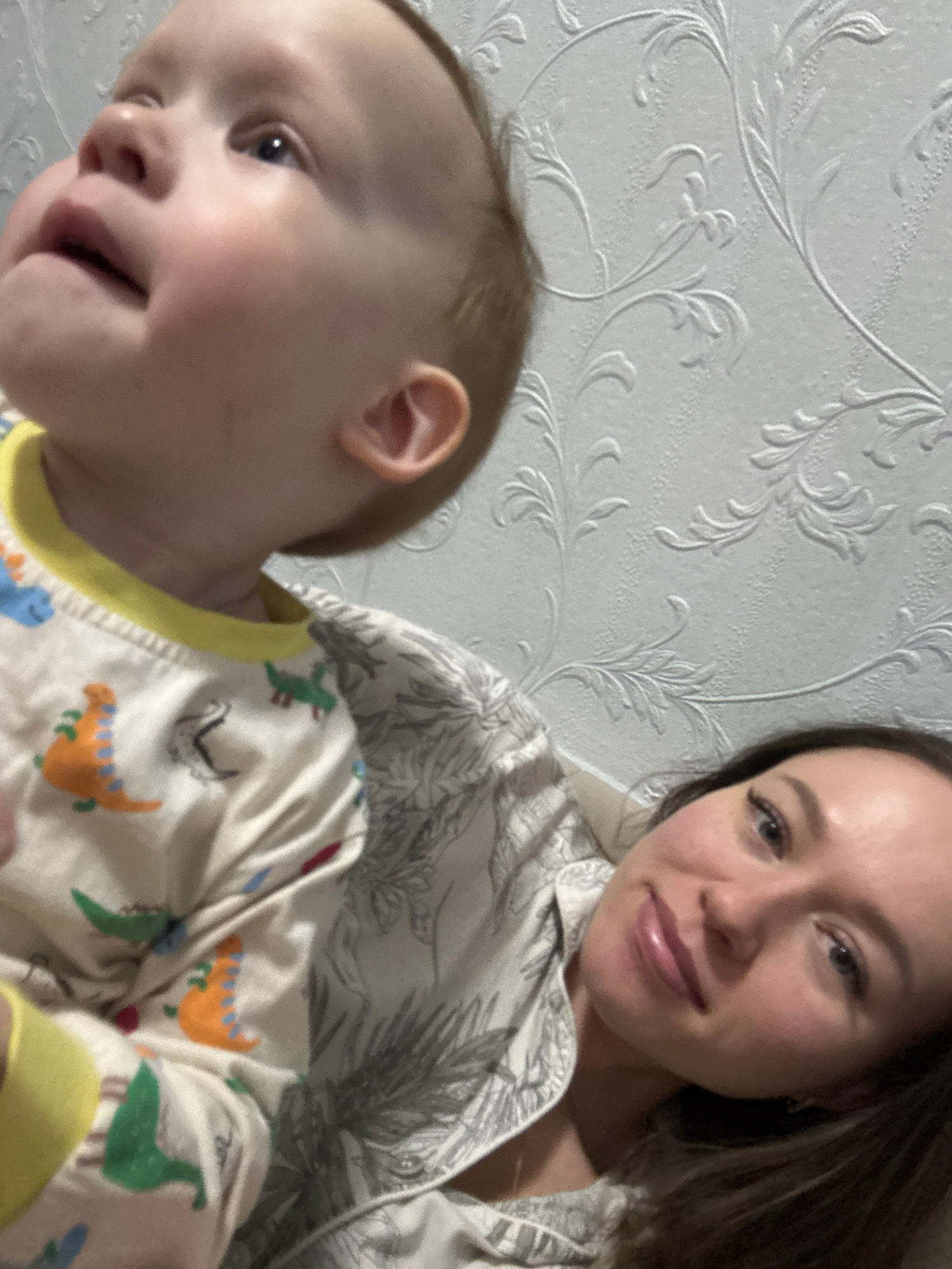 This close-up indoor image features an adult woman and a baby, likely a mother and child. The woman, positioned in the upper right, has long dark hair and a gentle smile, looking directly at the camer…read more