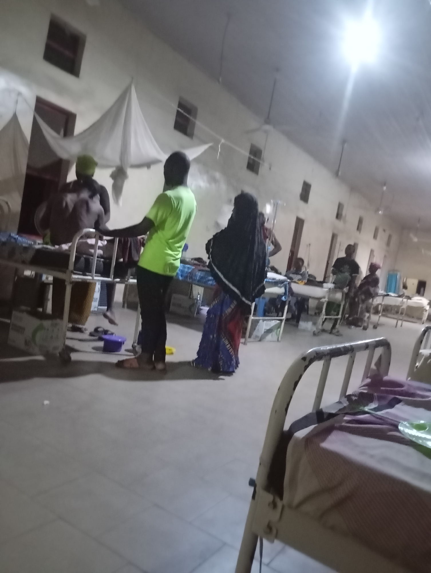 The image depicts the interior of a ward in what appears to be a medical facility, potentially located in Shendam, Nigeria. The room is lit with overhead lighting, and beds are lined up along the side…read more