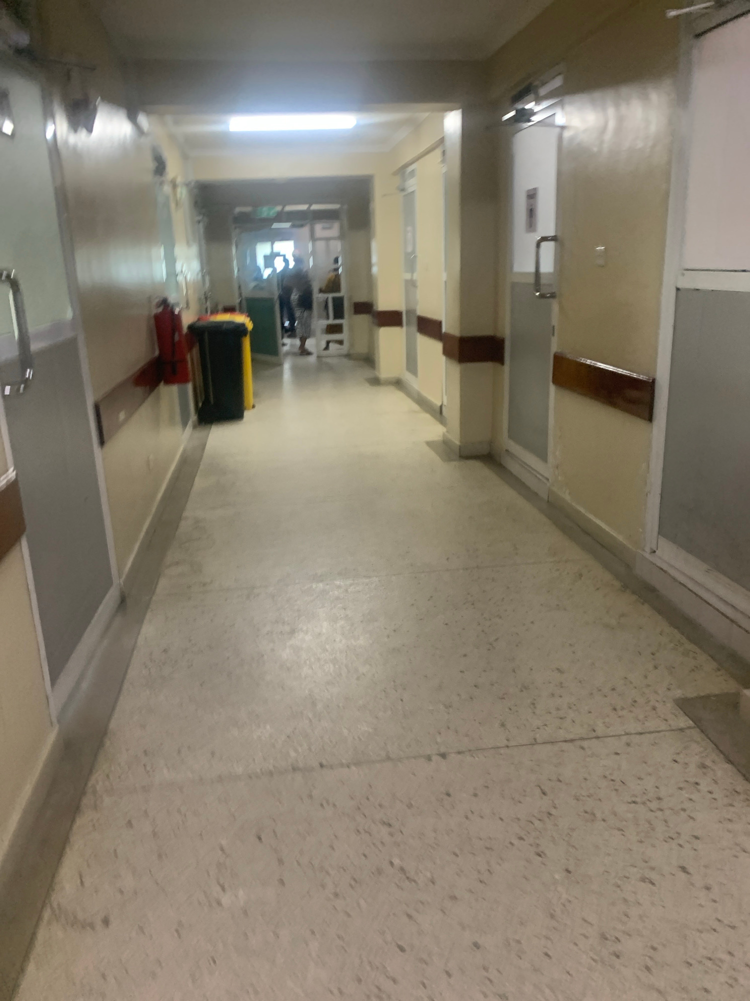 The image depicts an indoor hallway in what appears to be a building in Dar es Salaam, Tanzania, based on architectural styles and typical interior designs found in the region. The hallway has a beige…read more