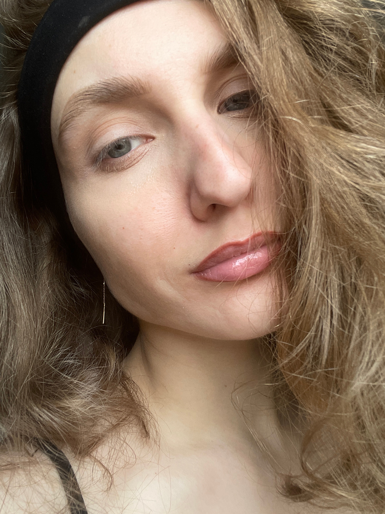 This close-up image, set in Podshivalovo, Russia, shows a person lying down, their head tilted or viewed from a unique angle, with significant portions of their face framed by their hair. The primary…read more