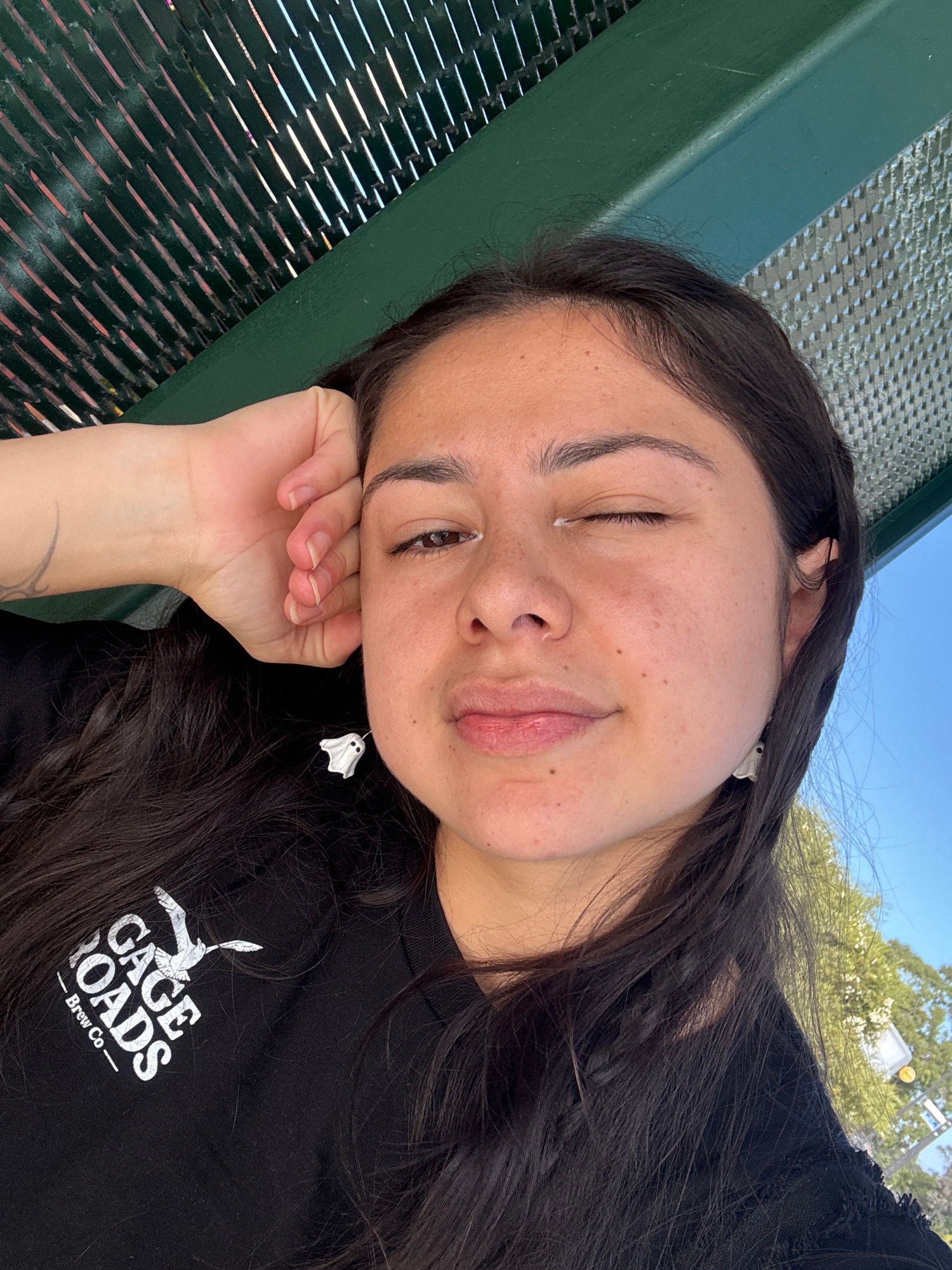 The image features a young woman lying on her side in an outdoor setting in Como, Australia, appearing to be in a state of relaxation or rest. Her head is gently propped on her right hand, and her lon…read more