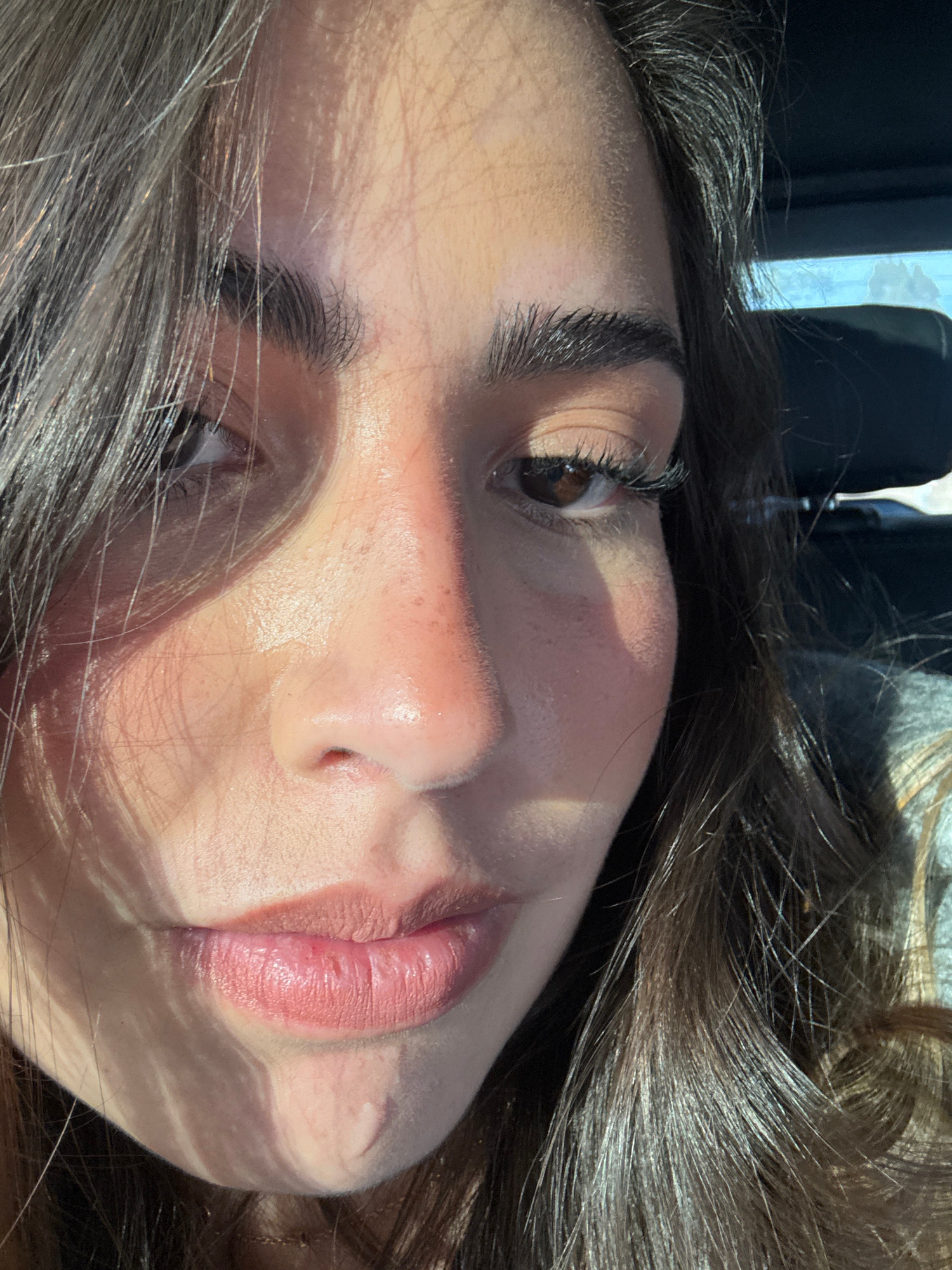 A close-up, rotated view shows a person's face partially obscured by shadows. The person has brown hair and brown eyes, with visible eyelashes and eyebrows. Their skin appears to be lightly textured,…read more