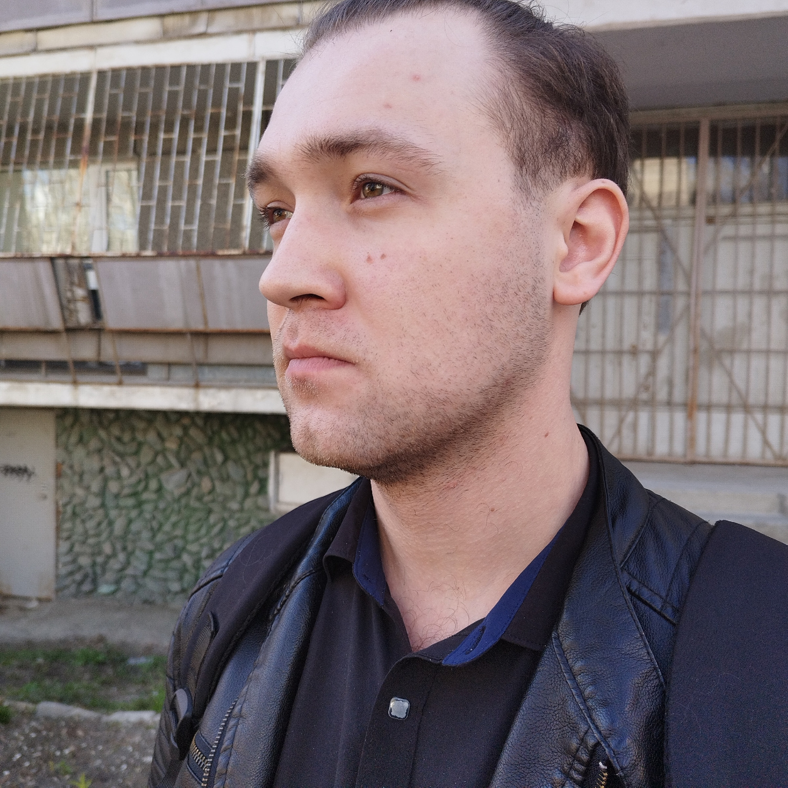 A young man is captured in a profile portrait, facing towards the viewer's right, set against an urban background. He appears to be in his twenties or early thirties, with dark, neatly styled hair and…read more
