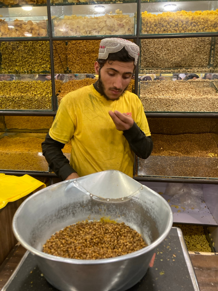 A male individual, appearing to be a young adult, is depicted standing behind a counter in a dry goods retail establishment in Quetta City Tehsil, Pakistan. He wears a yellow short-sleeved shirt over…read more