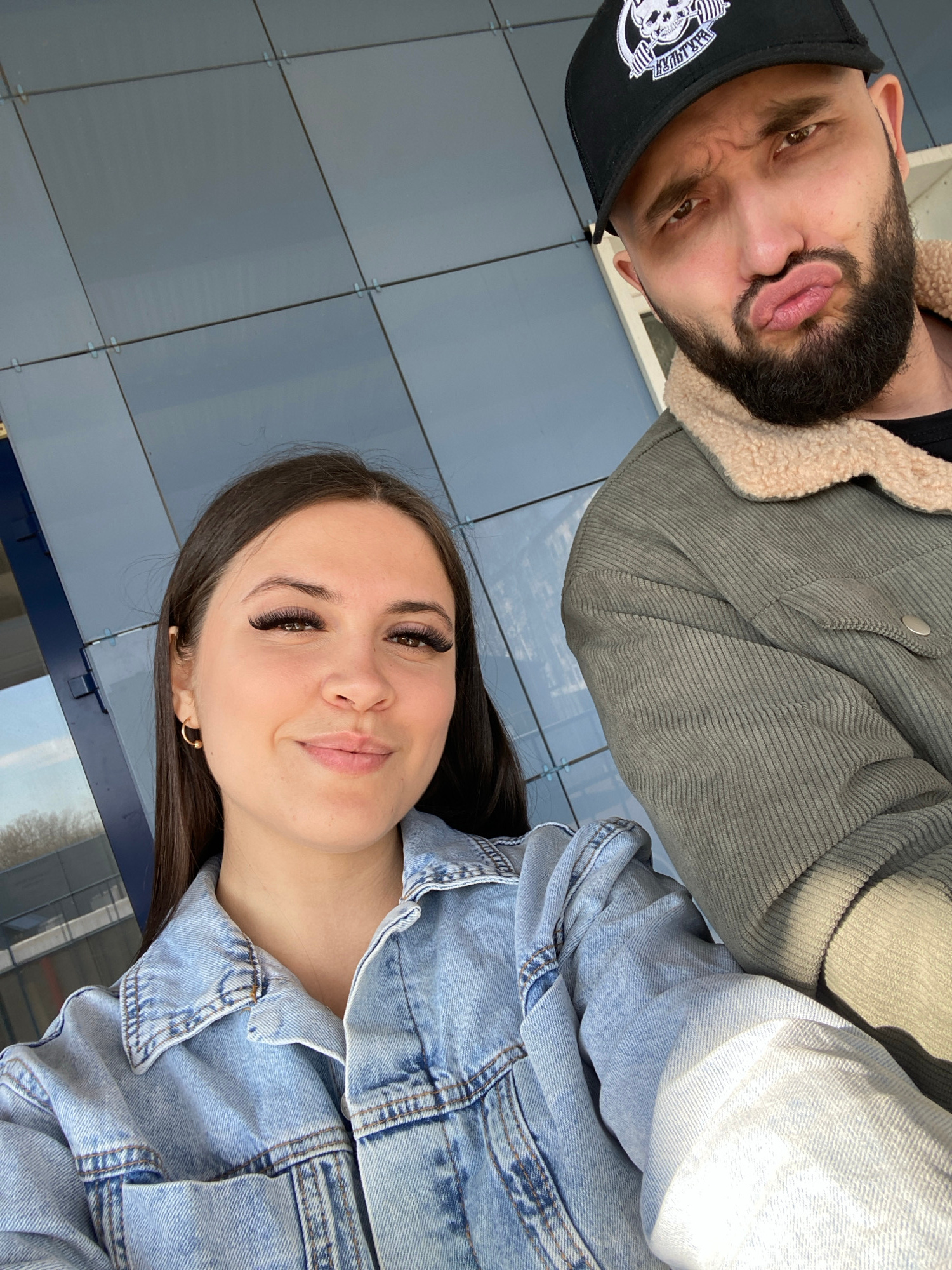 This is a portrait-style photograph featuring a man and a woman, taken in Chaikovsky, Russia. The image is oriented sideways, with subjects looking towards the camera. The man, positioned in the uppe…read more
