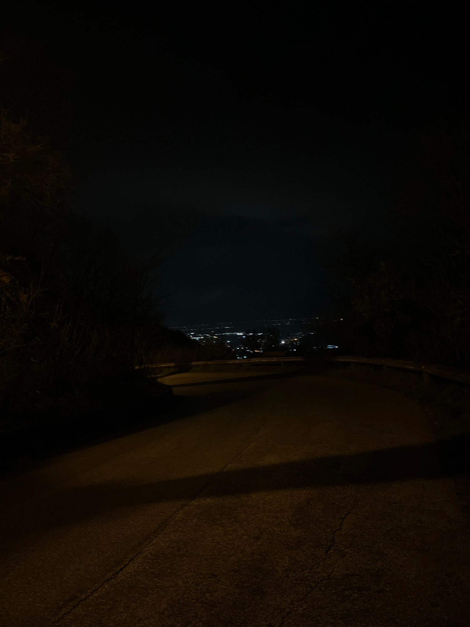 The image appears to be taken at night in an outdoor location. To the right is a concrete structure, possibly a wall or a bridge abutment, with a visible crack. To the left of the concrete structure iā¦read more