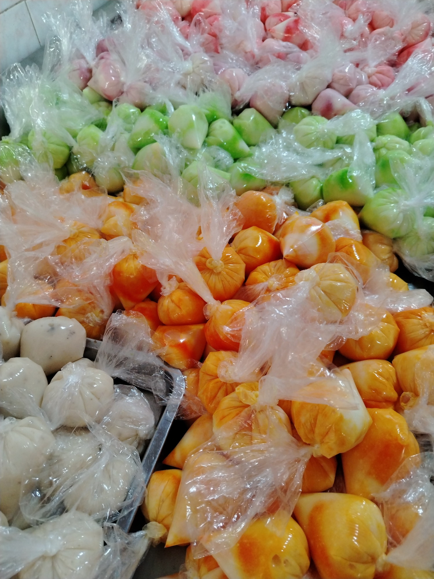 The image depicts a collection of wrapped sweets or desserts in a commercial or retail setting, likely in Tinaquillo, Venezuela. These appear to be individual portions contained in clear plastic bags.…read more