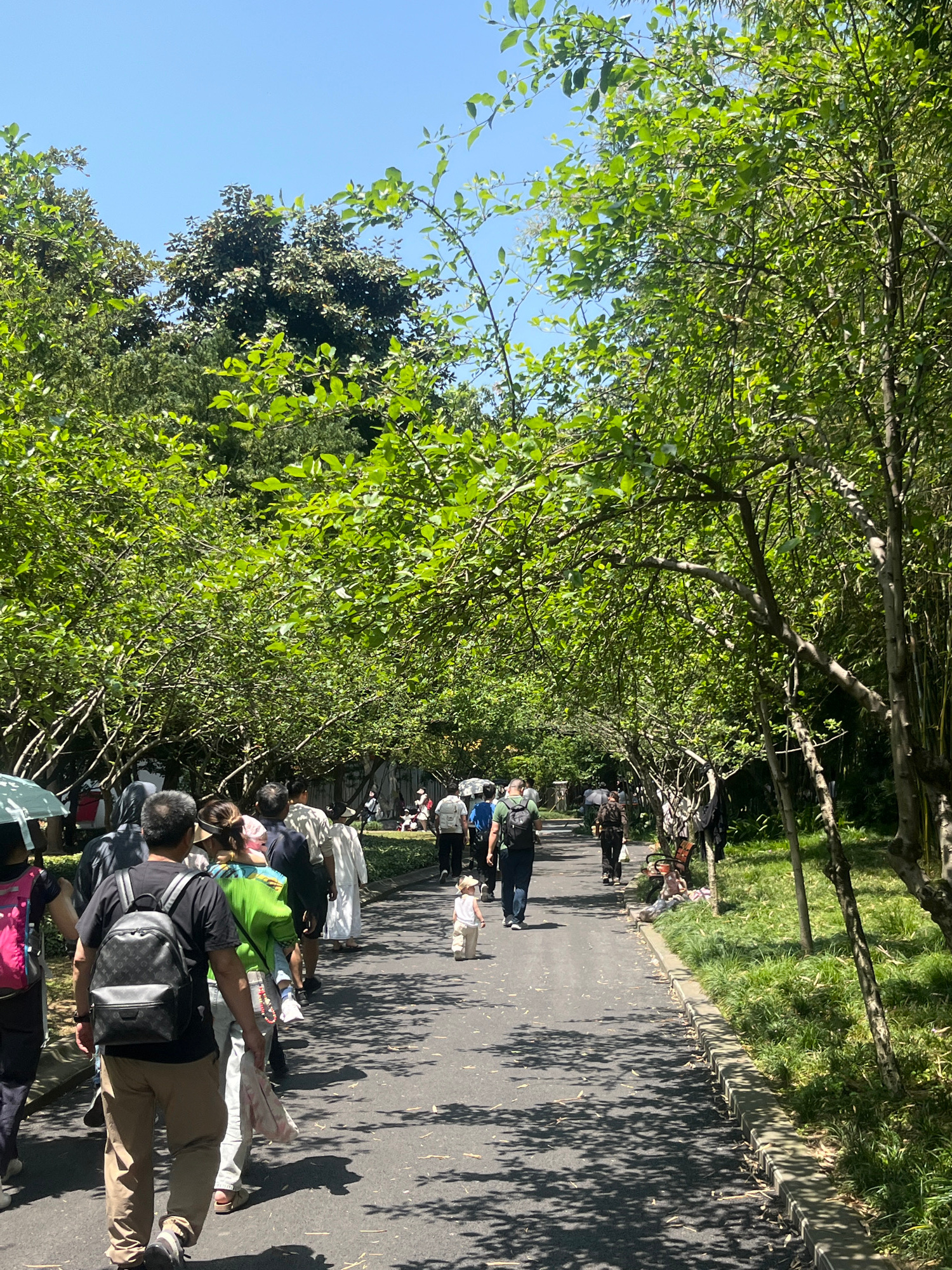 The image shows a group of people walking along a paved path lined with trees. The location appears to be outdoors in Jiulongpo District, China, based on the visual characteristics of the scene. The p…read more