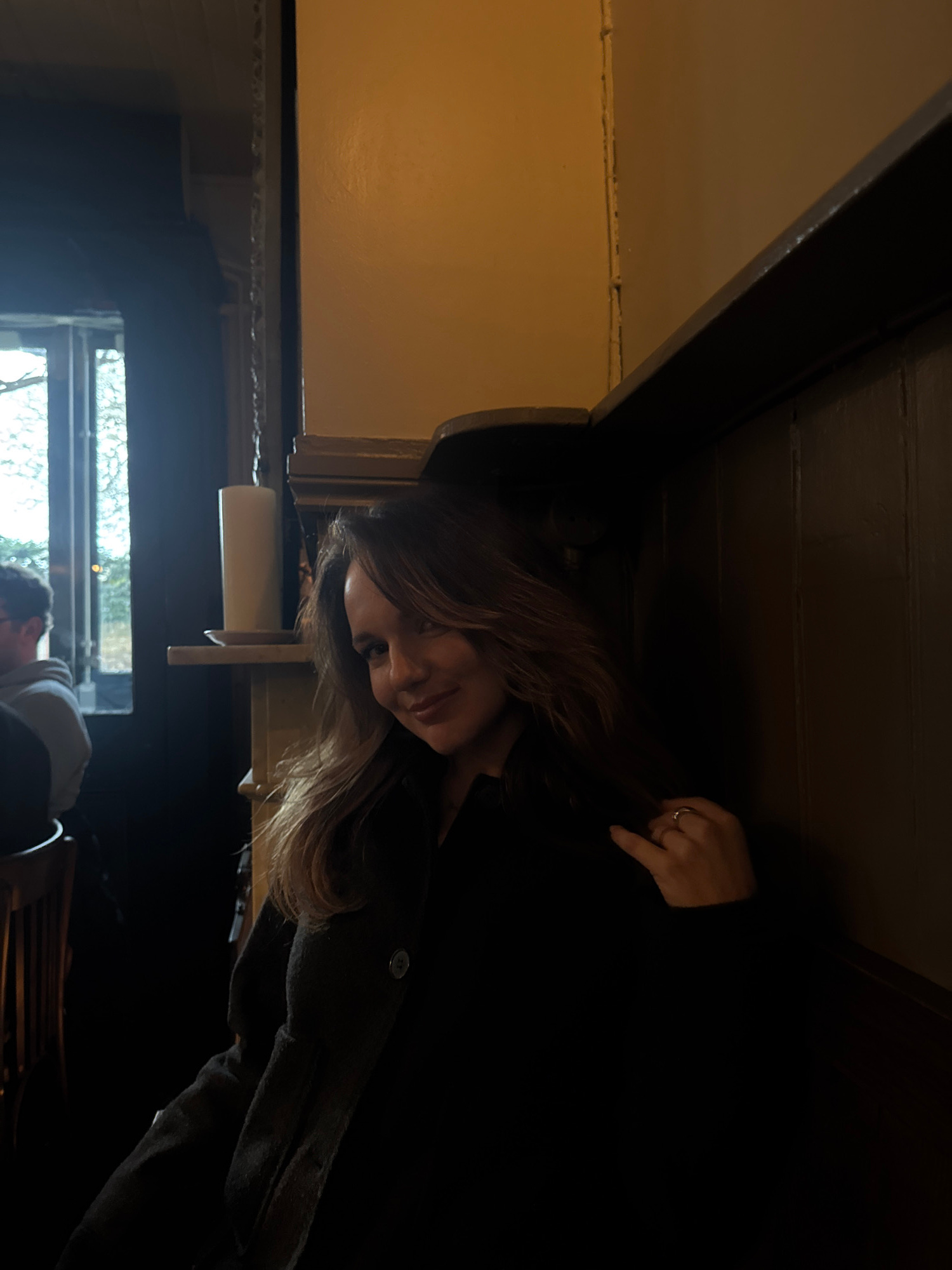 A woman with long, light brown hair is seated in what appears to be a dimly lit room in London, United Kingdom. The lighting is poor, and the background is partially obscured by darkness. The woman is…read more