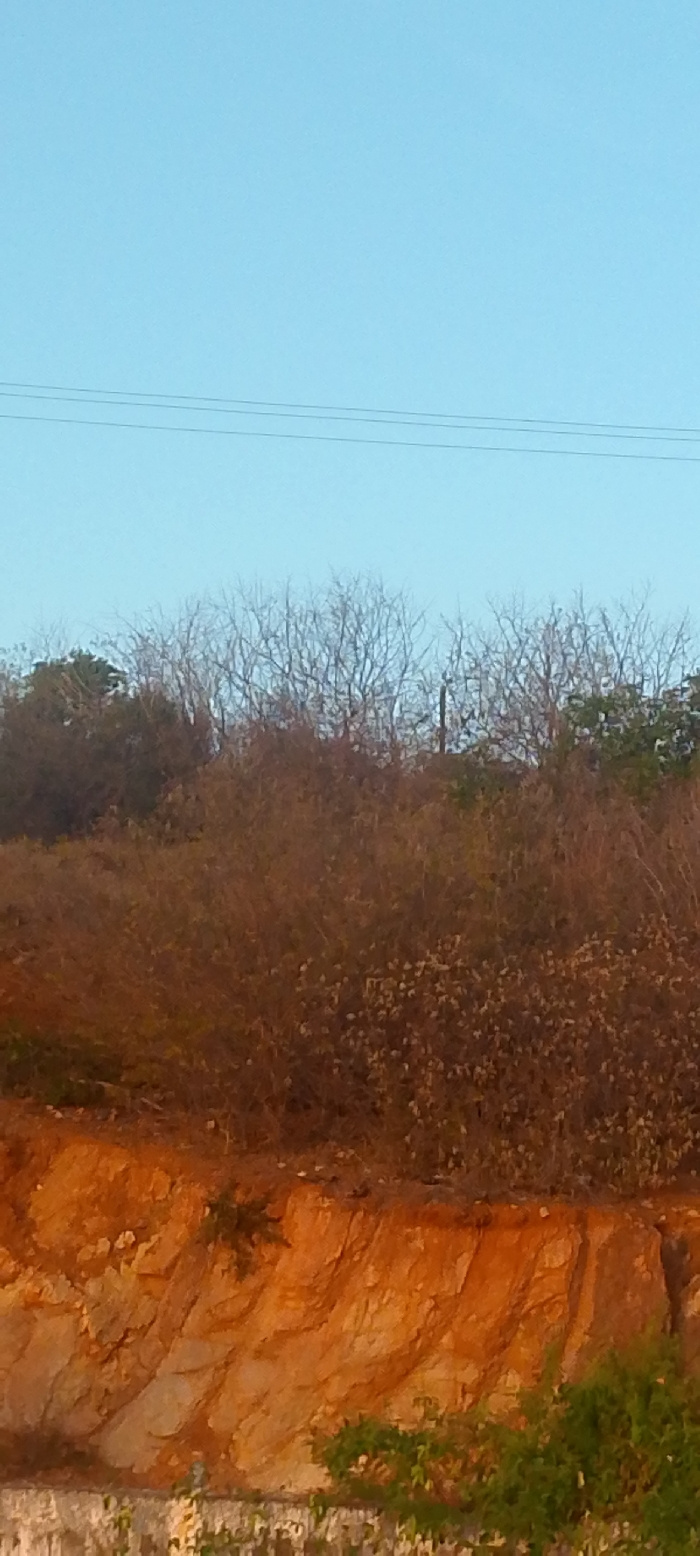 The image depicts an outdoor scene in Juan Griego, Venezuela. The upper approximately one-third of the frame is a clear, light blue sky, featuring three thin, dark, parallel utility lines positioned h…read more