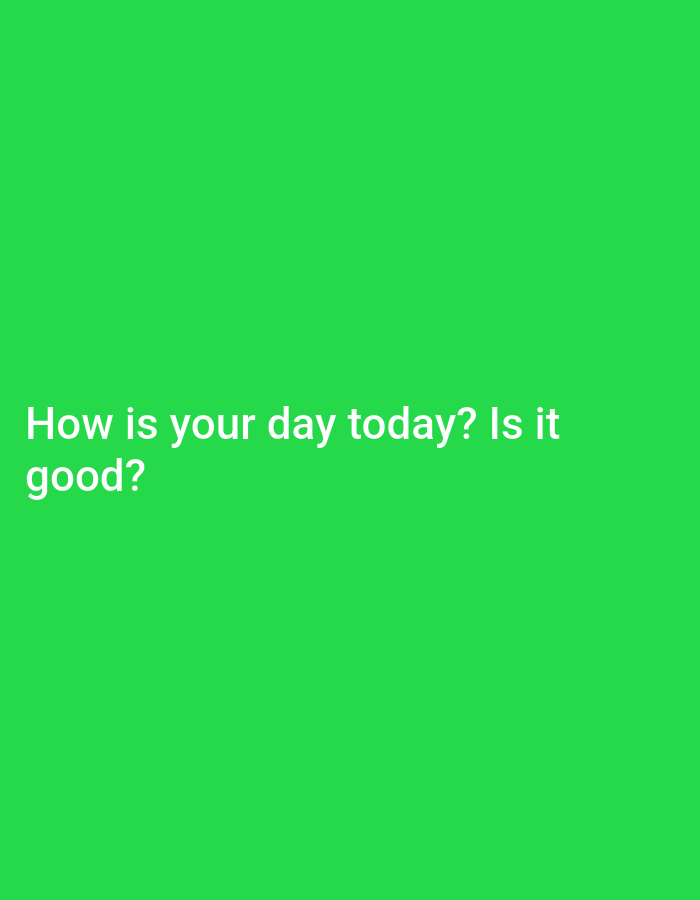 The image is a solid green background with the text "How is your day today? Is it good?" in white text centered near the bottom-left. There is no indication of location or city.