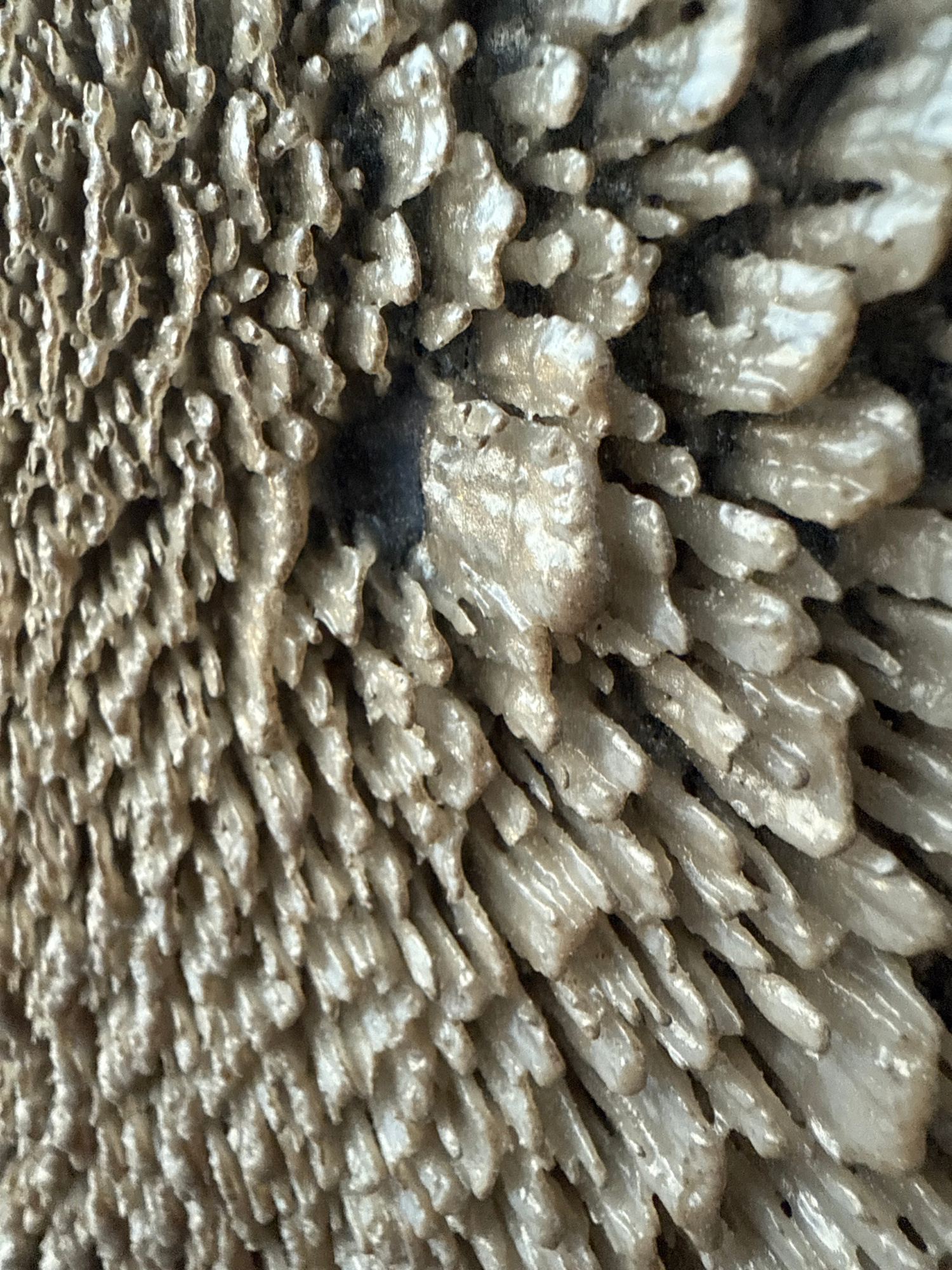 The image presents a close-up view of numerous icicles or ice formations, possibly on a structure. The color palette consists of grayscale tones, ranging from dark shadows to bright, reflective highli…read more
