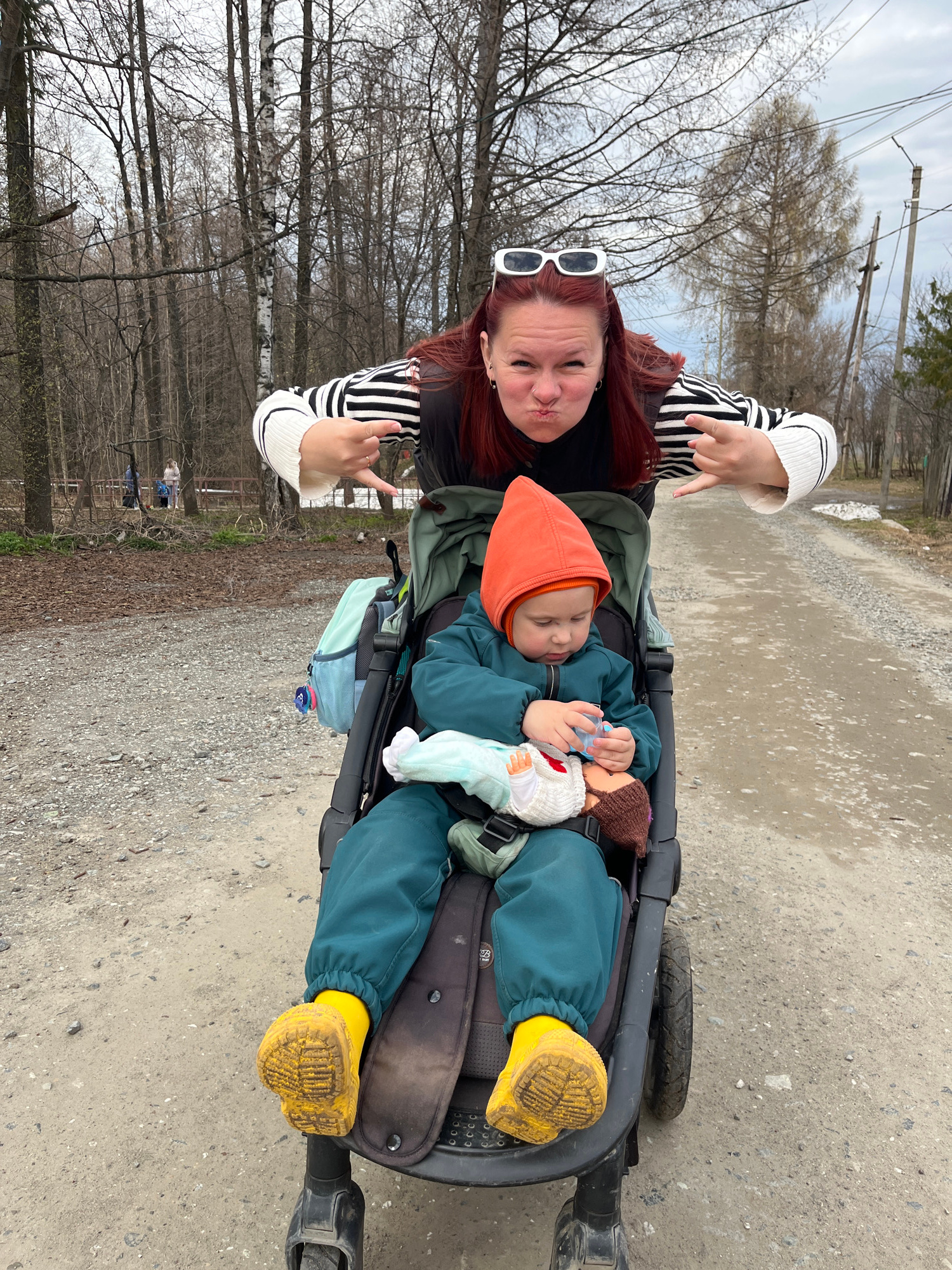 This image, likely captured in Chaikovsky, Russia, features a woman and a child on an outdoor path, surrounded by a sparse natural environment. The scene appears to be set during daytime on an overcas…read more