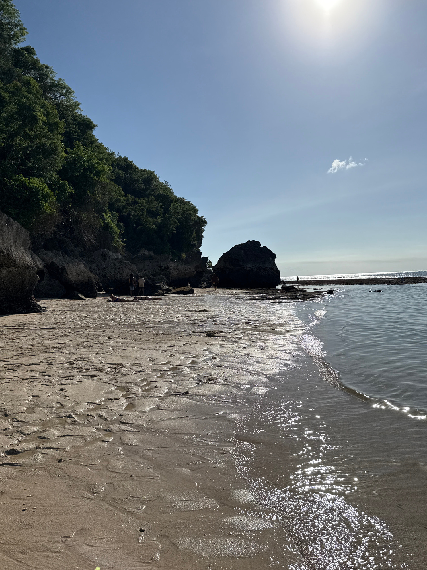 This media file captures a sunny coastal landscape, characteristic of Kuta Selatan, Indonesia. The image is oriented in portrait but depicts a horizontal scene if rotated 90 degrees counter-clockwise.…read more