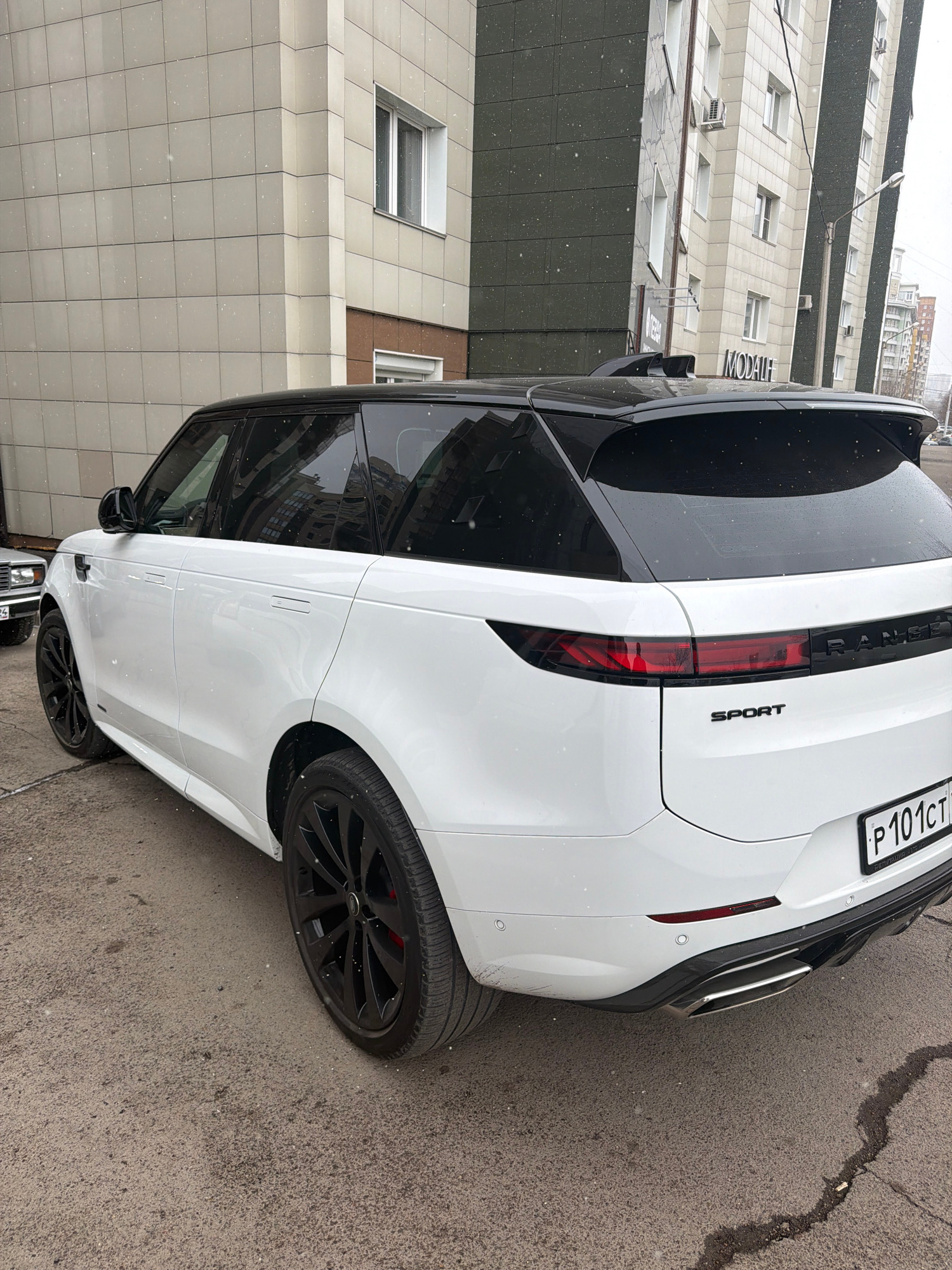 The image shows the rear of a white Range Rover Sport parked on a street, likely in the city of Krasnoyarsk, Russia, based on the license plate which reads "P 101 CT". The vehicle is parked next to a…read more