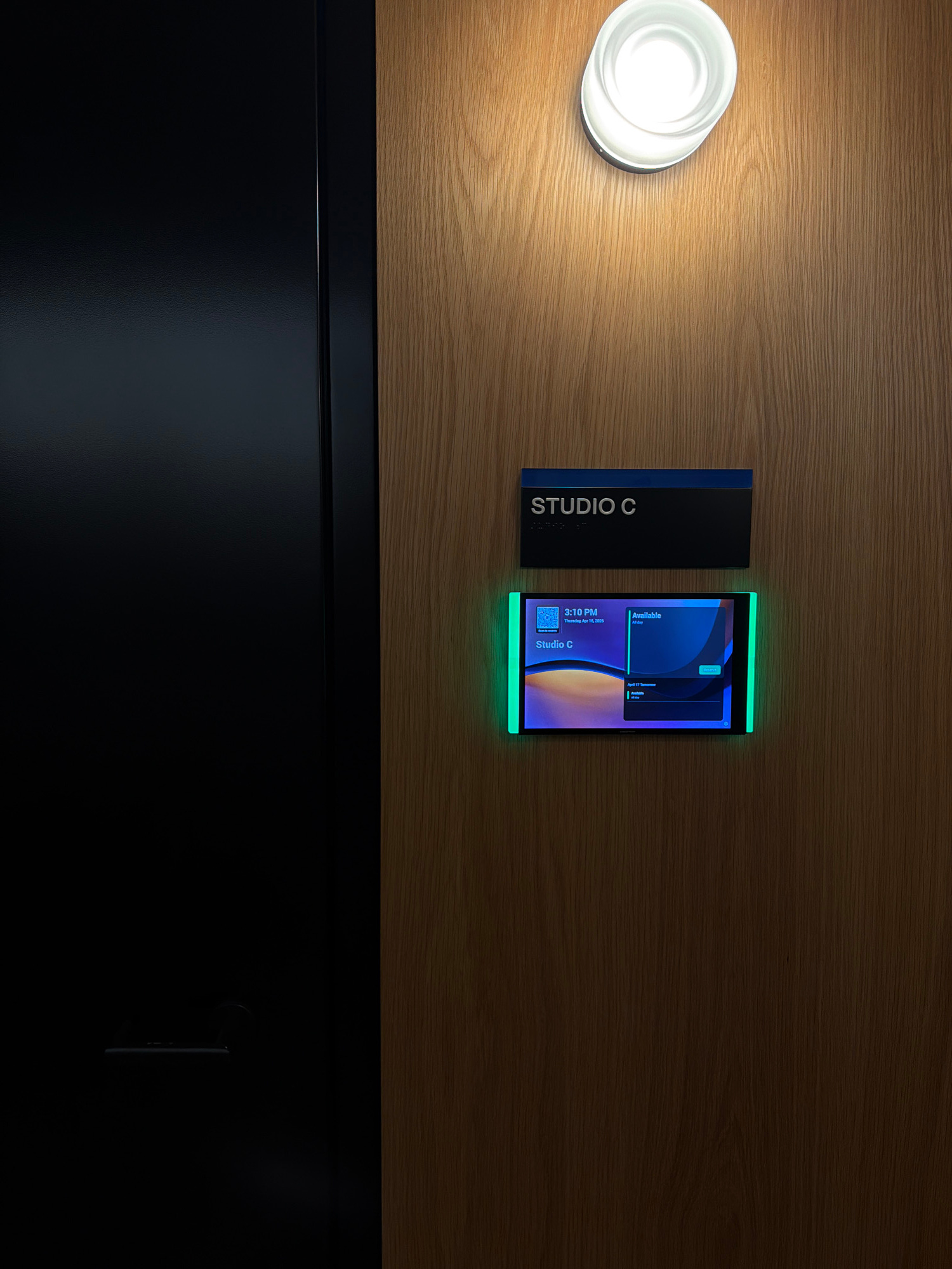 An overhead view captures a modern interior setting, likely a workspace or studio in Los Angeles, USA. The upper portion of the image showcases a light-toned wooden desk or table surface with a visibl…read more