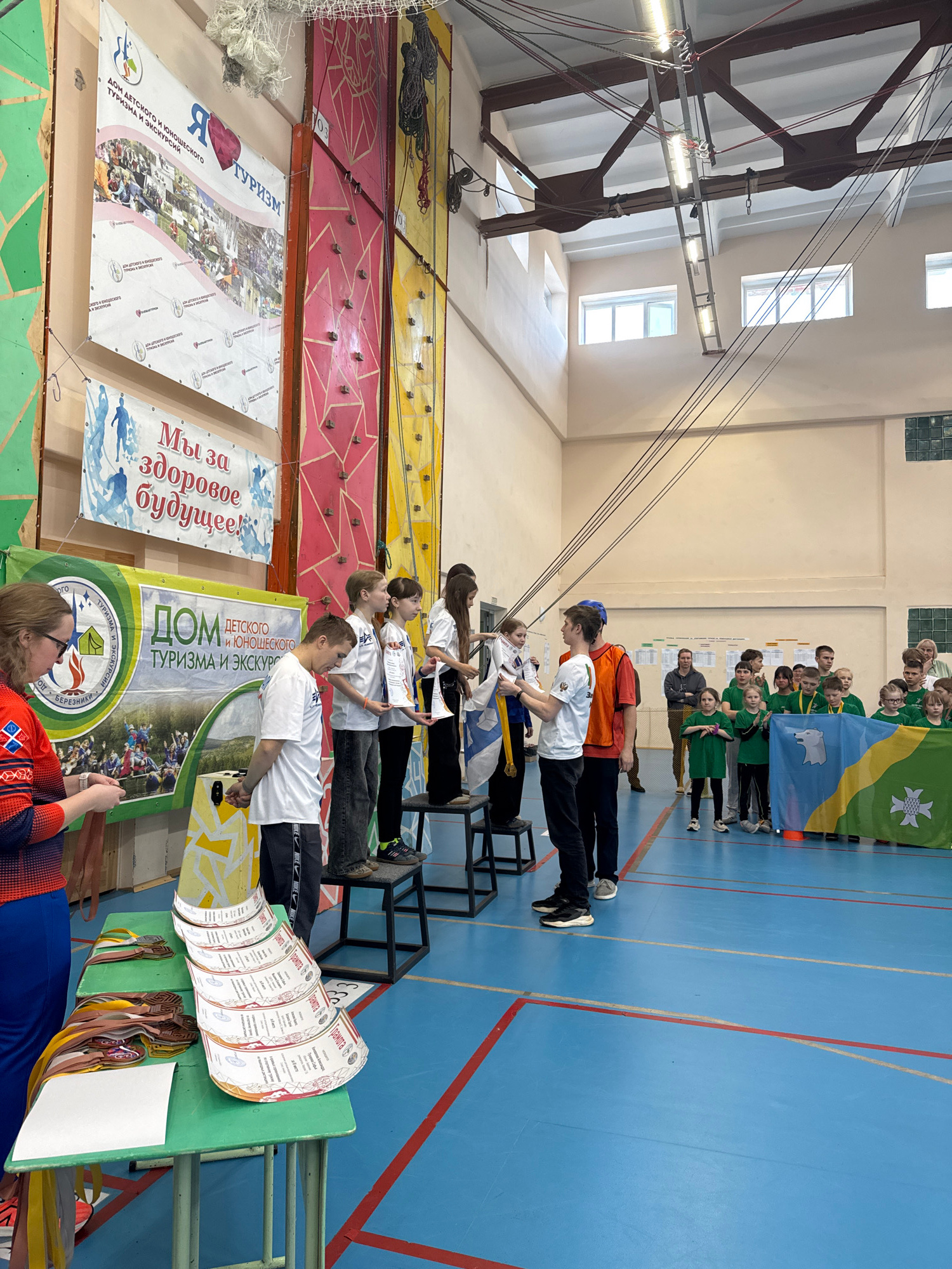 The image depicts an indoor event, likely an award ceremony or celebration, taking place in what appears to be a gymnasium or large hall in Usolye, Russia. In the foreground, a person with glasses, w…read more