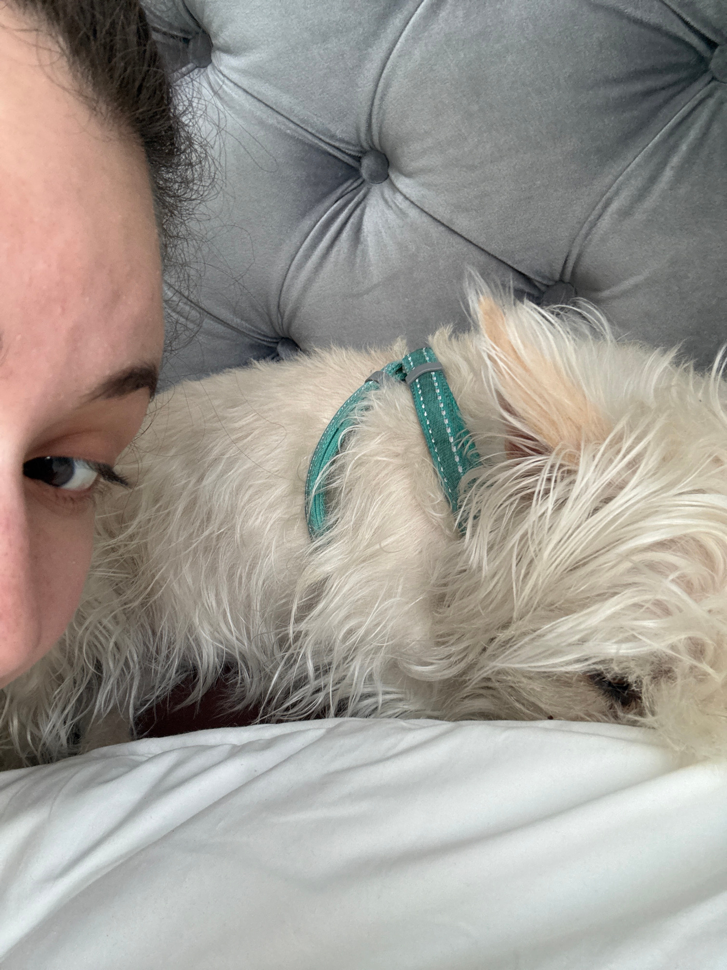 A close-up, eye-level shot features a person, most likely female, partially visible in the lower foreground. Only the forehead, eyebrow, and one eye are clearly visible. The eye is looking upward. The…read more
