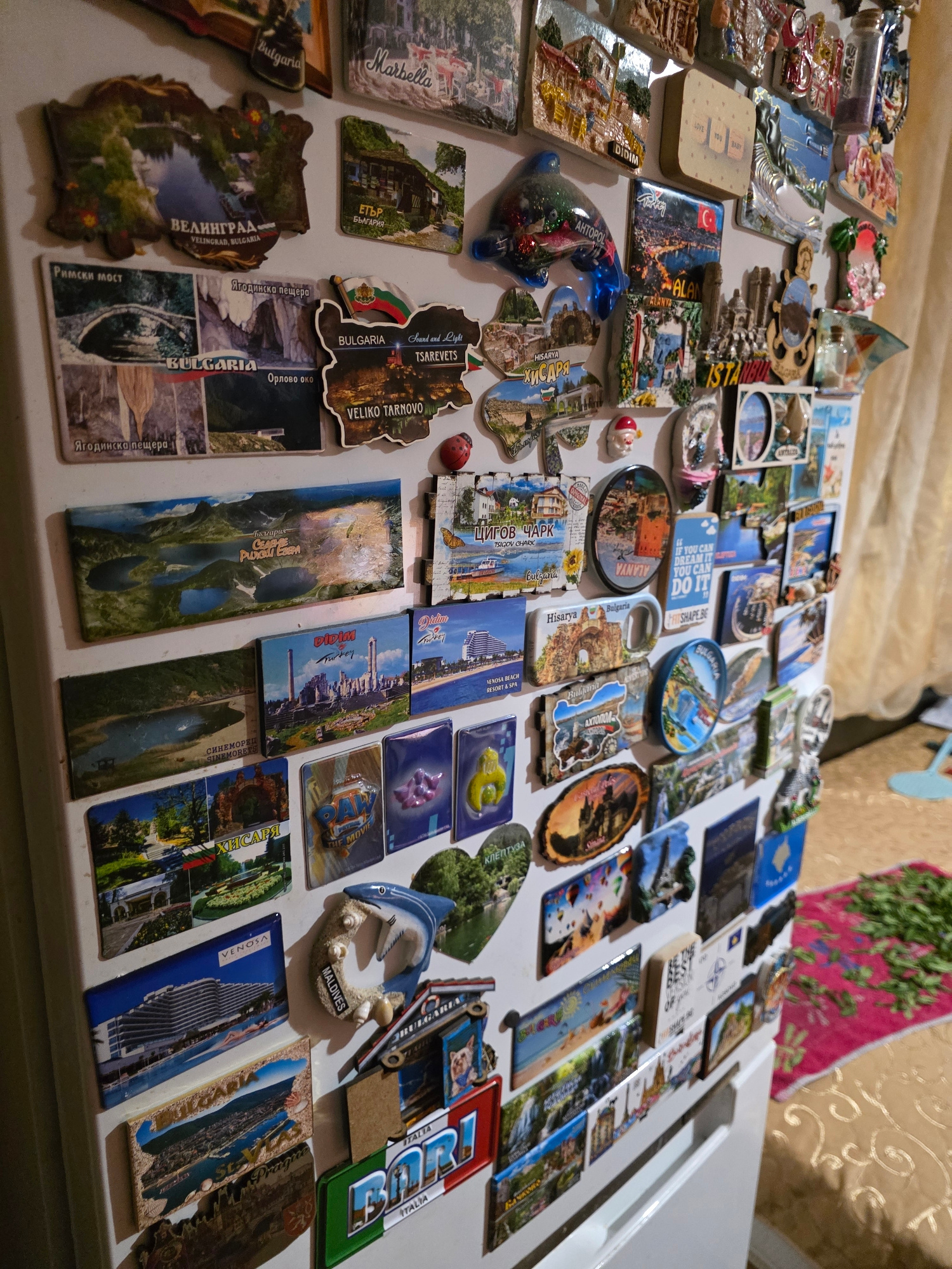 The image shows a collection of souvenir magnets spread out on a white surface. The magnets depict various locations and landmarks from different places, with a notable concentration of magnets from B…read more