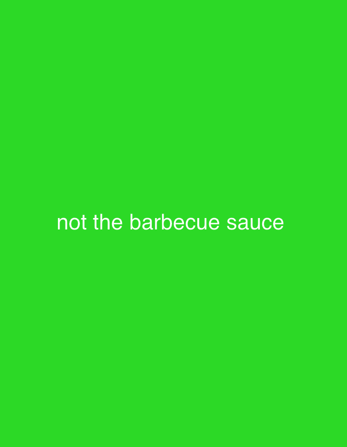 A solid green background occupies the majority of the frame. White text at the bottom center reads "not the barbecue sauce."