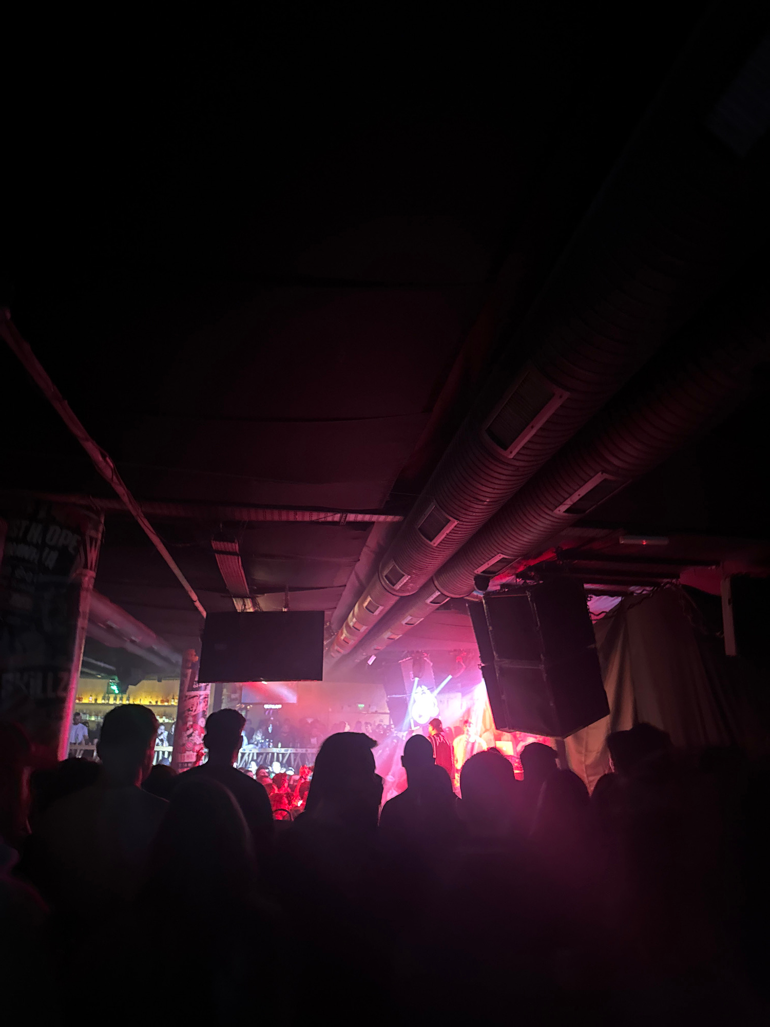 The image appears to be taken at a concert or performance venue in Sofia, Bulgaria. The view is likely from a backstage or elevated position, looking down on the crowd. The foreground is dominated by…read more