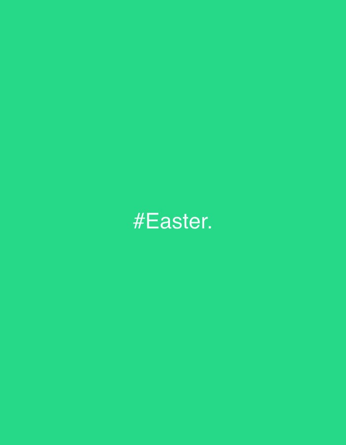 A digitally created image features a solid, uniform green background. Centered on the image is the text "#Easter." in white font. The image does not depict any location, people, objects, or actions.