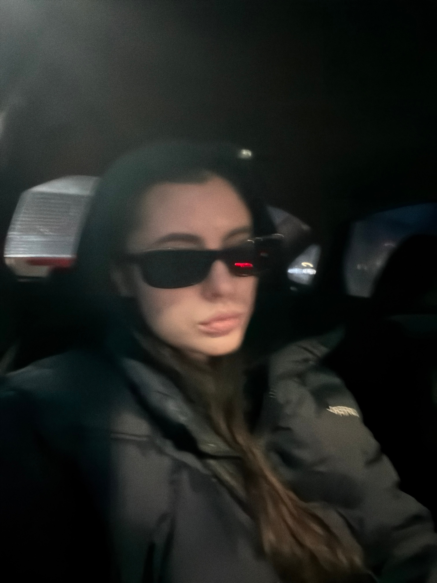 The media file consists of an original image and several crops, predominantly featuring a young person, likely female, inside a vehicle at night. The central subject is a person with dark hair, seen…read more