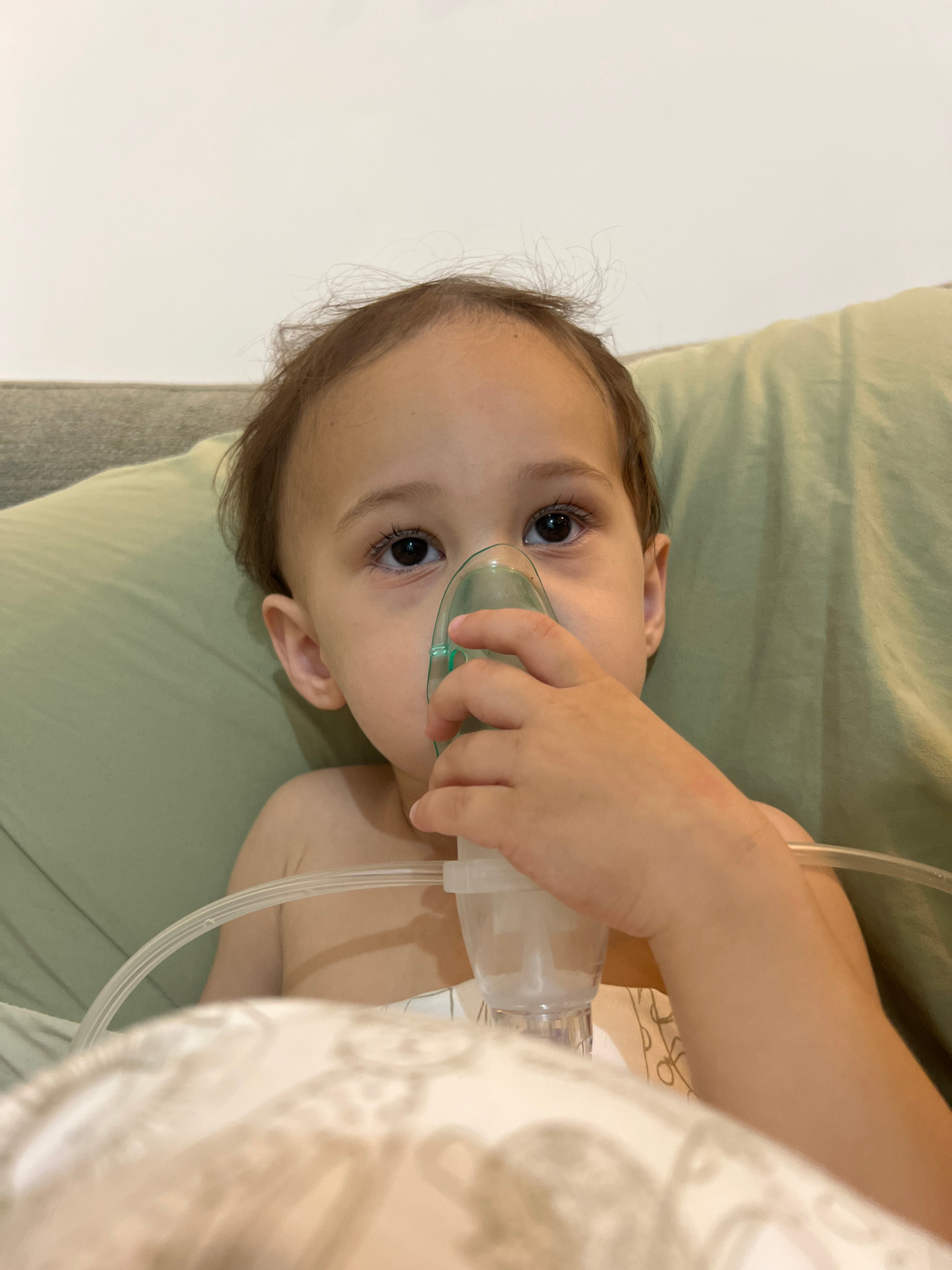A young child, estimated to be between one and three years old, is depicted in a close-up, high-angle shot, situated indoors, likely in Kiryat Bialik, Israel. The child has light brown hair, dark eyes…read more