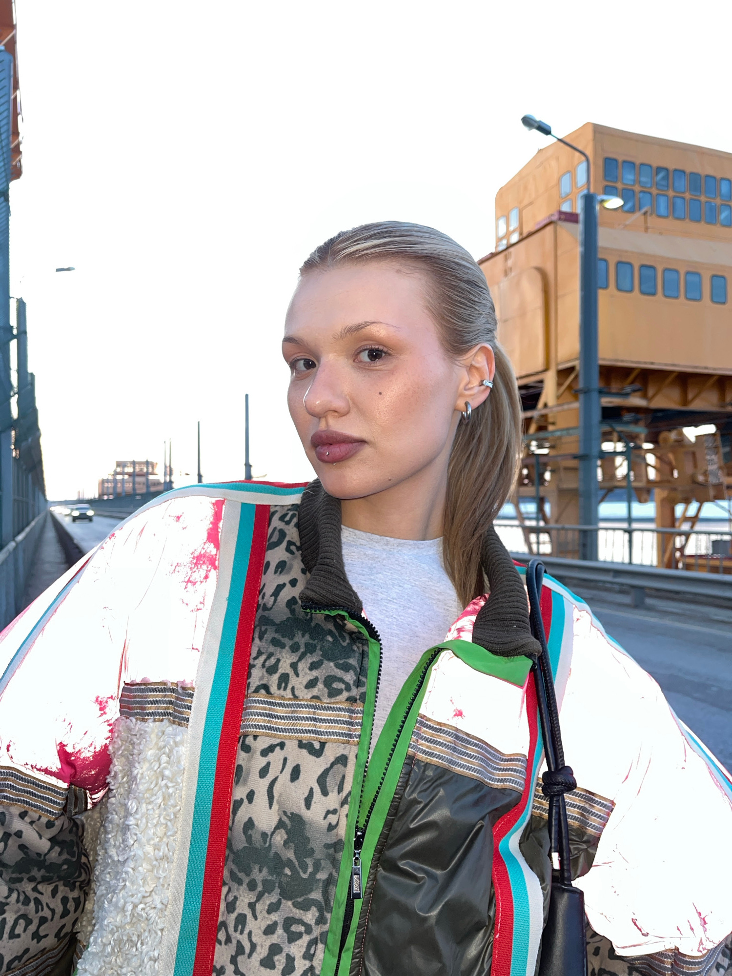 A young woman with fair skin, light brown hair, and a nose ring stands in front of an industrial structure in what appears to be the city of Chaikovsky, Russia, based on the architectural style. The w…read more
