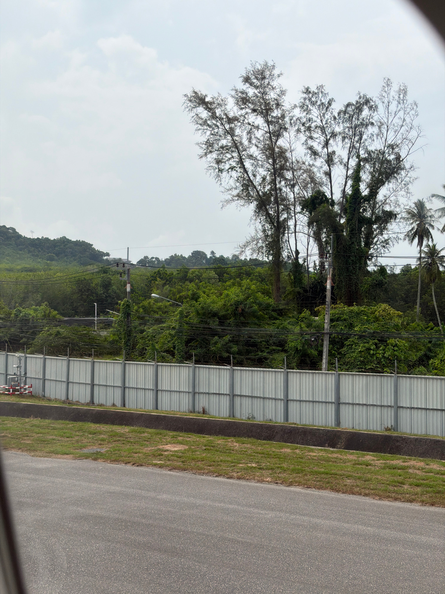 The scene is an outdoor setting, likely in or near Sakhu, Thailand. A view through a window (suggested by the blurry frame) reveals a landscape of greenery, including trees (some deciduous, some tropiβ¦read more
