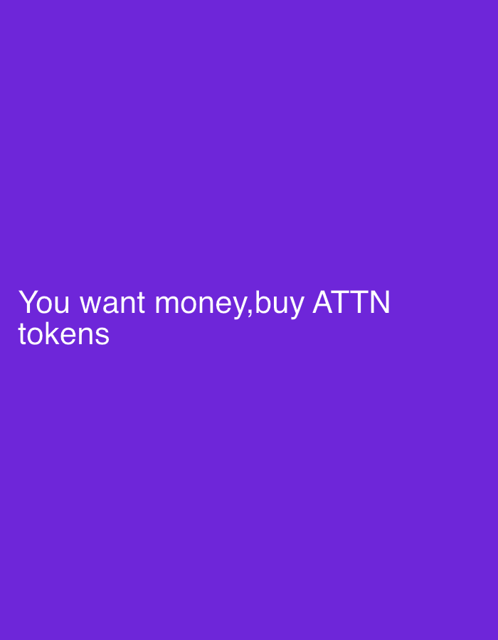 The image is a purple background with the text "You want money, buy ATTN tokens" in white. There is no discernible location in Varna, Bulgaria, people, subjects, objects, actions, interactions, or oth…read more
