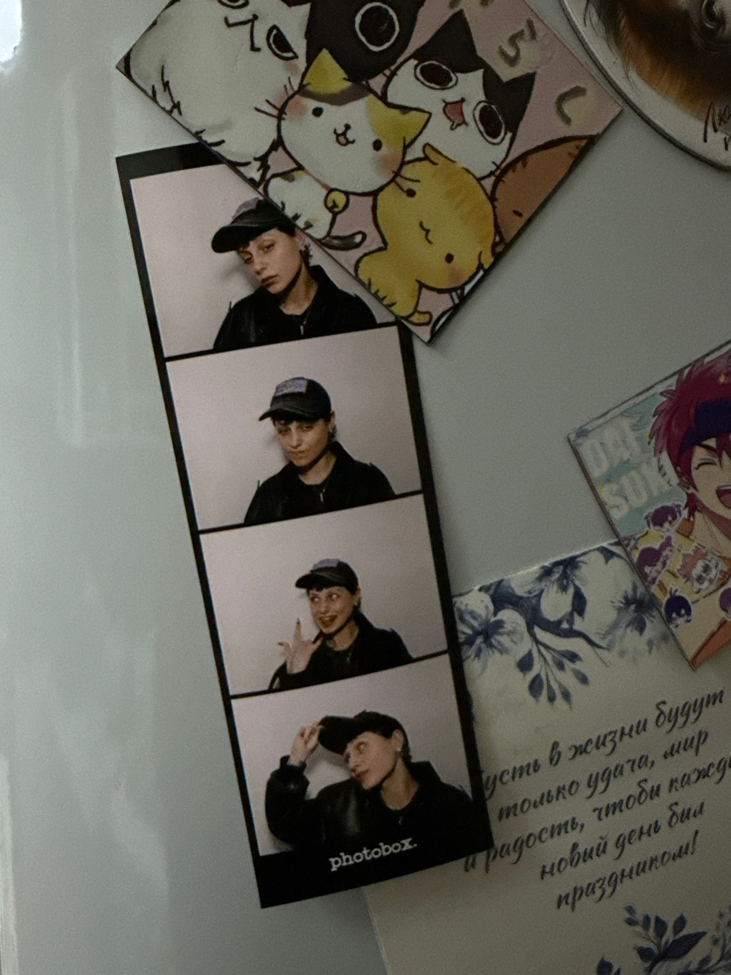 The image appears to be a close-up shot of a collection of items on a white surface. The items include: a round object (possibly a coaster or magnet) with a brown and white pattern, a square-shaped ob…read more