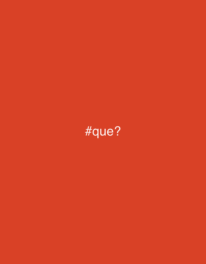 The image is a solid reddish-orange background with the text "#que?" in white, centered horizontally and vertically. There are no other objects, people, or environmental details visible. The image's c…read more