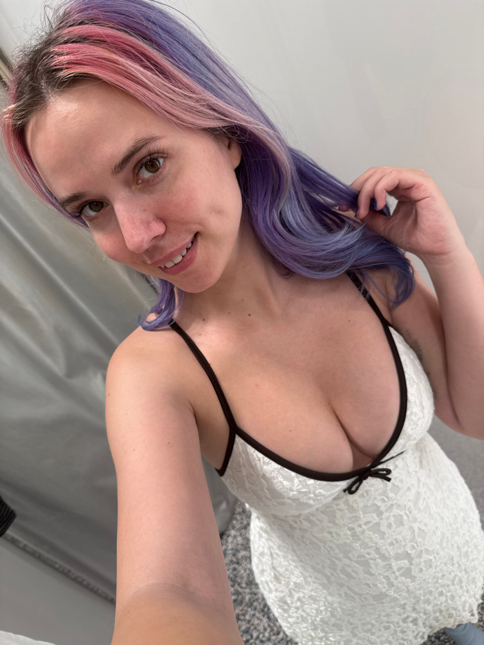 A female subject is depicted in a close-up, waist-up selfie within an unidentifiable indoor setting. The location cannot be precisely determined as being within the City of Zagreb, Croatia, based on t…read more