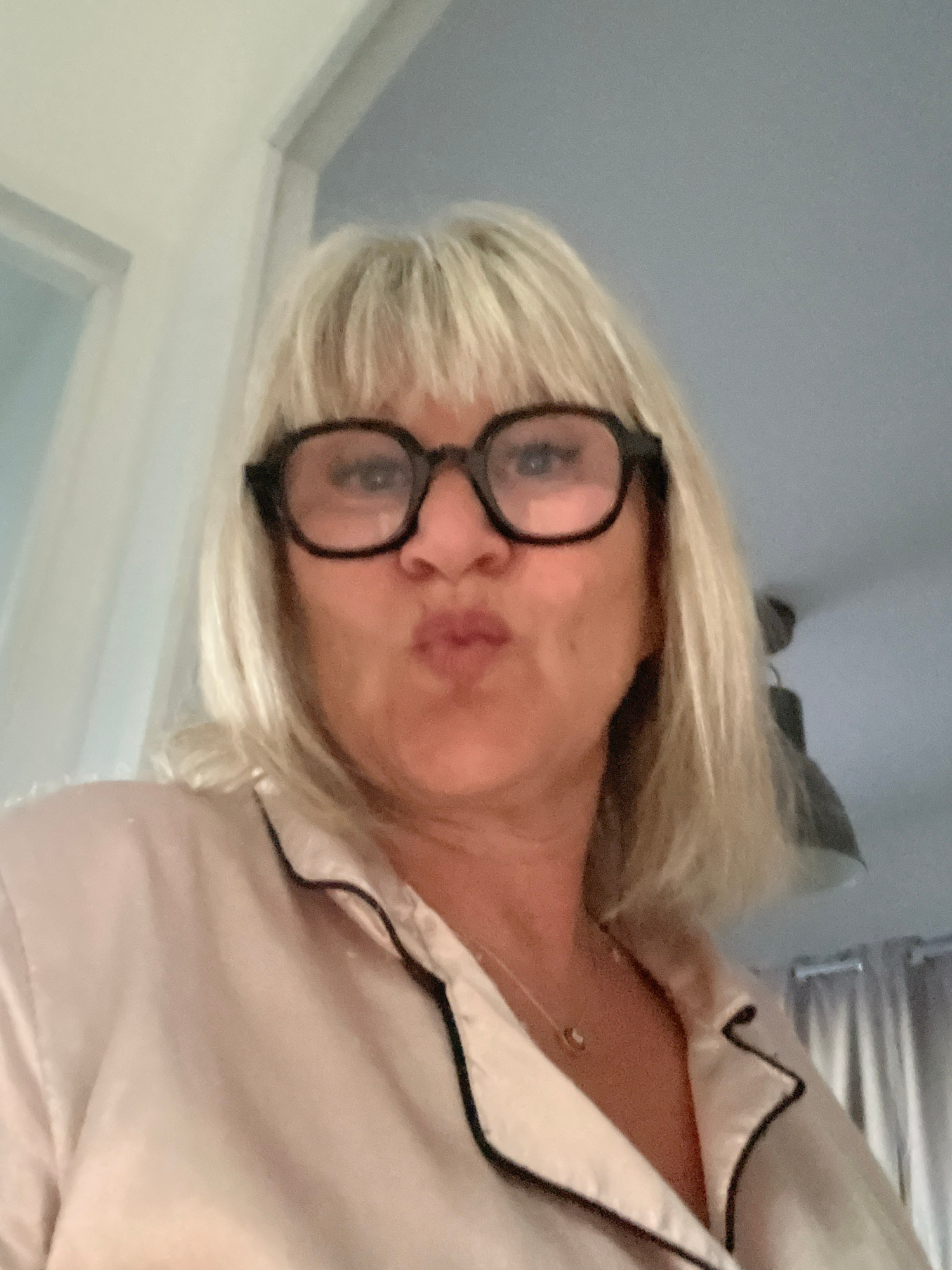 An eye-level selfie shows a person with short, light blonde hair and black-framed glasses, making a pursed-lip expression. The person is angled upwards towards the camera, which is positioned below th…read more