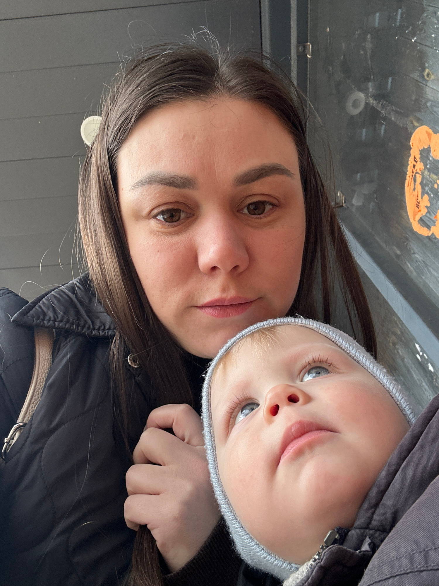 A woman and a young child are posing for a selfie. The woman has long, dark brown hair and brown eyes. She is wearing a dark quilted jacket. The child has blonde hair, blue eyes, and is wearing a greyβ¦read more