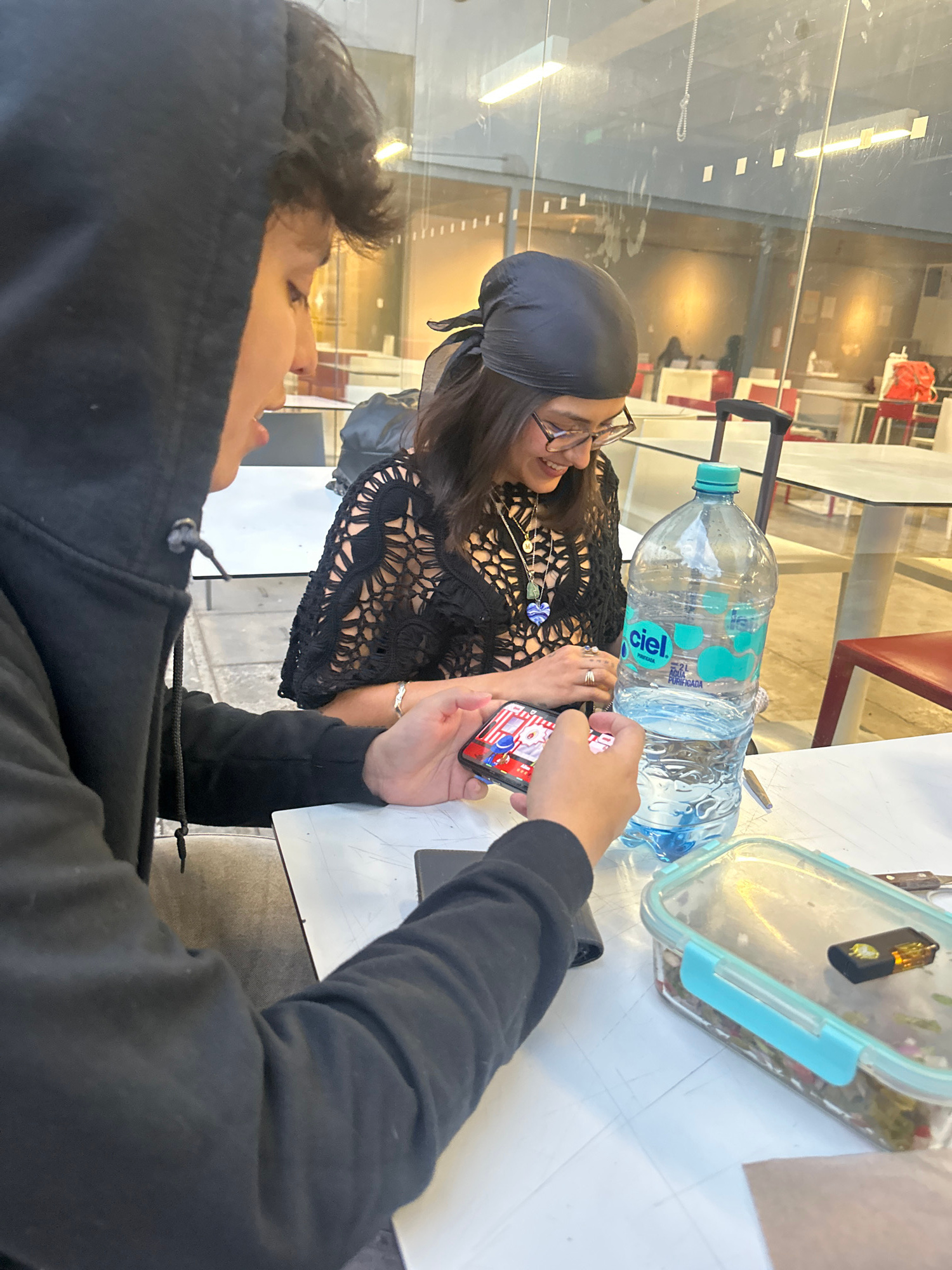 This image captures a candid moment between two individuals seated at a white table in an indoor setting, likely in Mexico City, Mexico. The scene features a woman and another person, partially visibl…read more