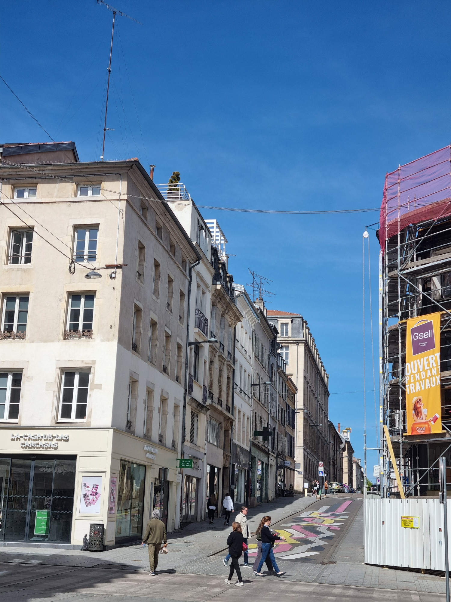 The image depicts a street scene in Nancy, France, characterized by tall, European-style buildings lining the street. **Environment:** The setting is a sunny, clear day. The street is paved and featuβ¦read more