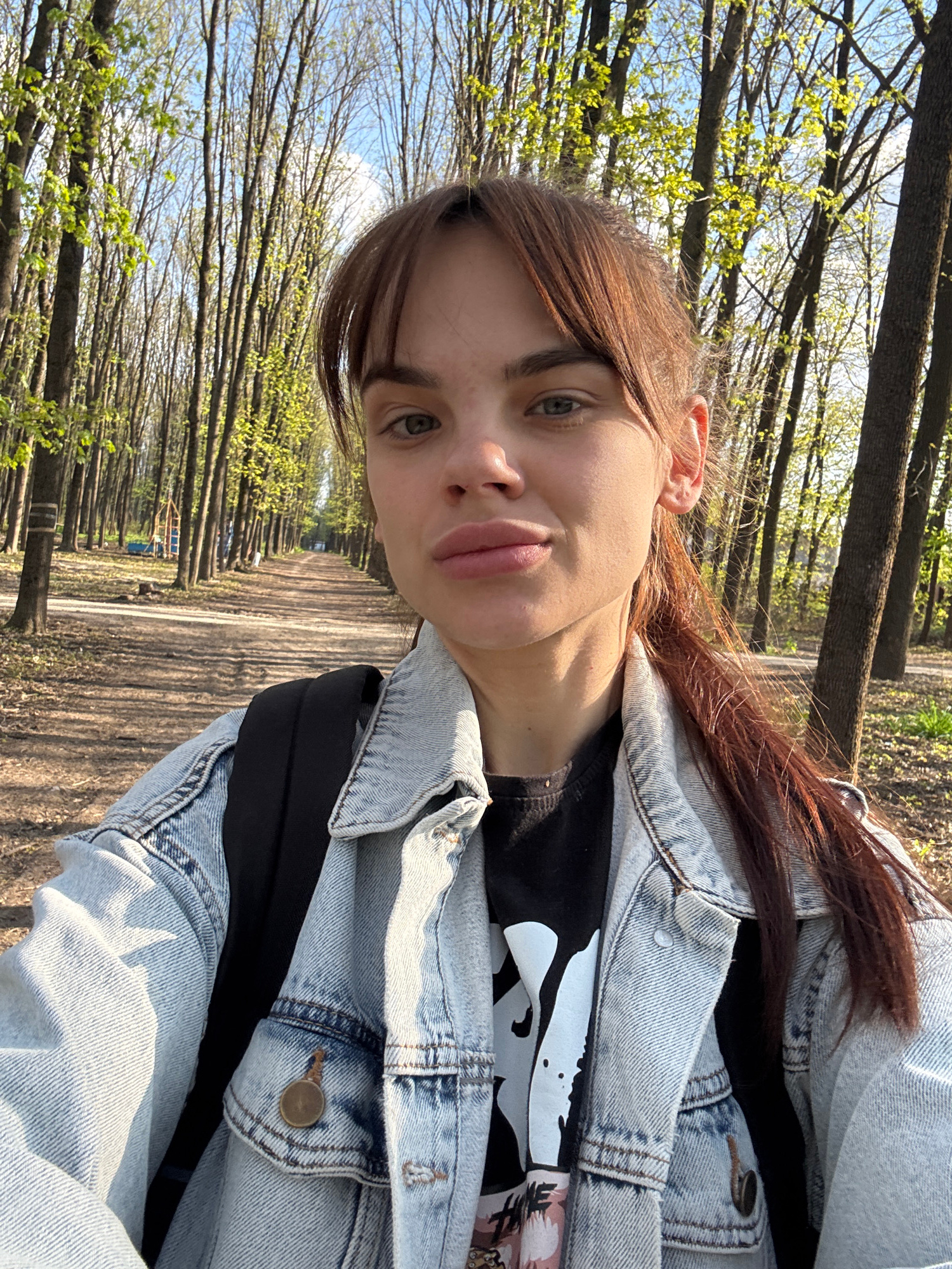 This media file presents a close-up, selfie-style portrait of a young person, likely female, captured outdoors in what appears to be a park or tree-lined avenue in Rostov-on-Don, Russia. The image isβ¦read more