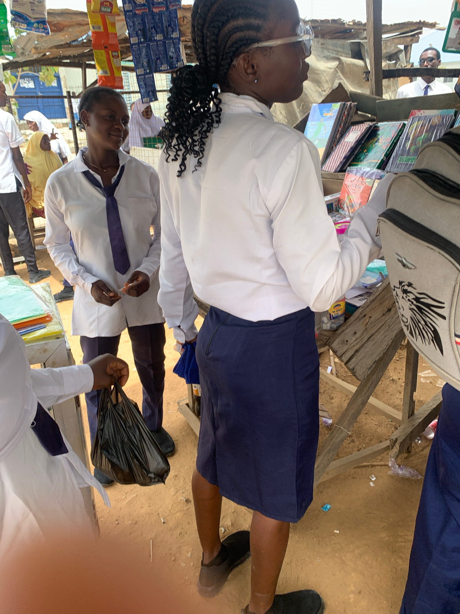 In Keffi, Nigeria, the image shows a group of people, most likely students in school uniforms, near a roadside stand. The students appear to be making purchases, possibly of school supplies. The stand…read more