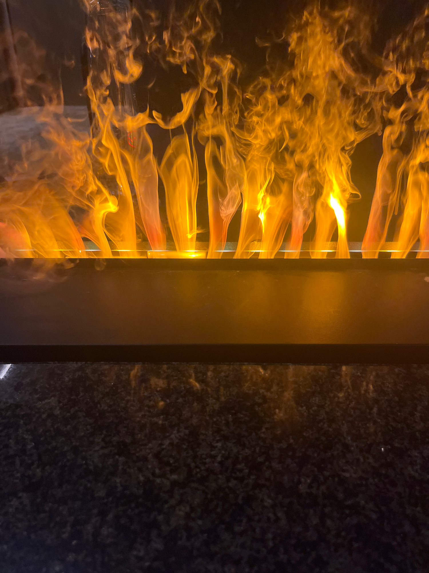 The image presents a striking architectural or artistic installation, likely captured at night or in a dimly lit indoor setting. The primary subject is a vertical display on the left side, featuring h…read more