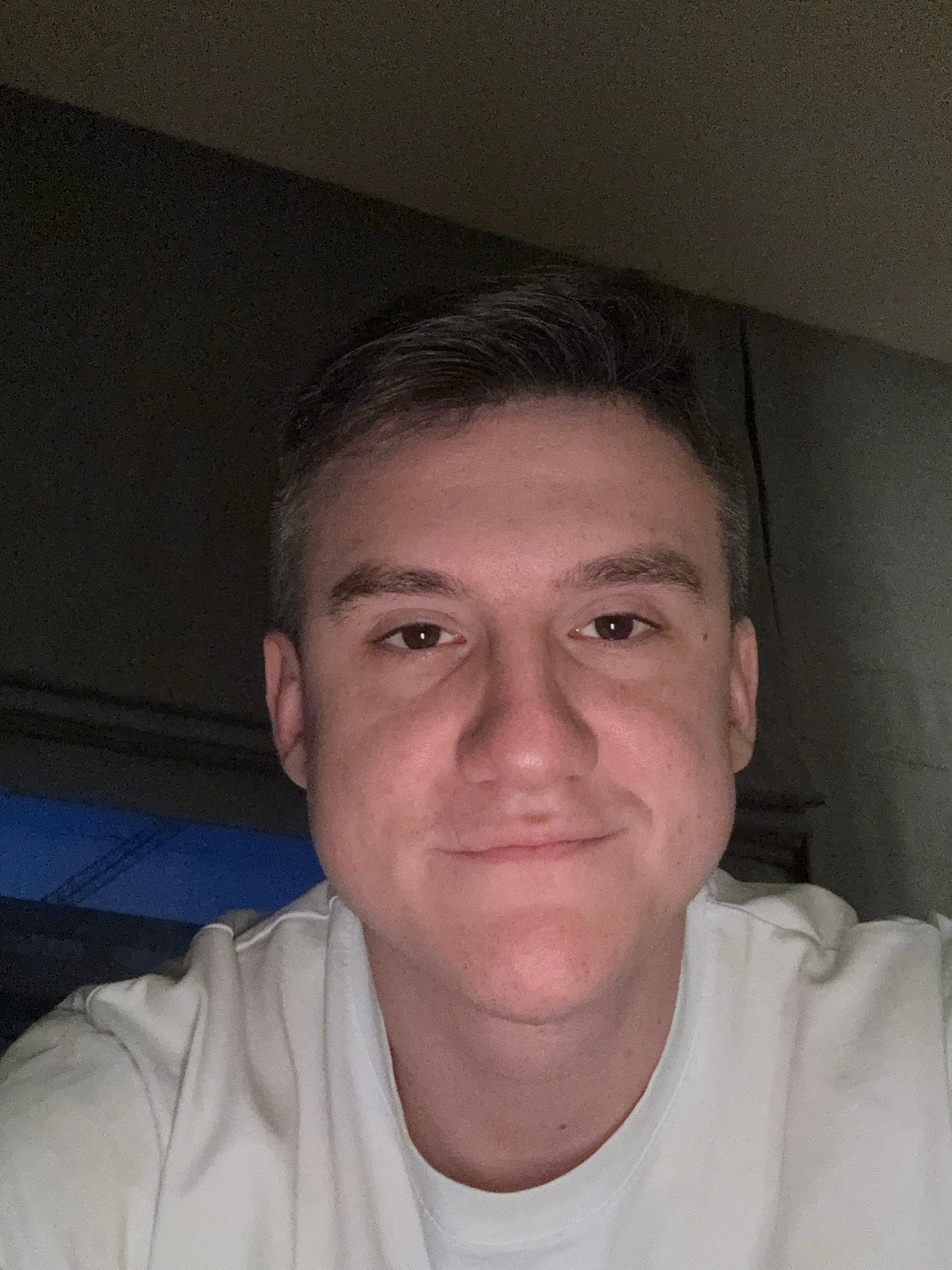 A man is lying down, likely indoors, with his head towards the top left of the frame. He has short, graying hair, and is wearing a white t-shirt. His face is turned towards the camera, displaying his…read more