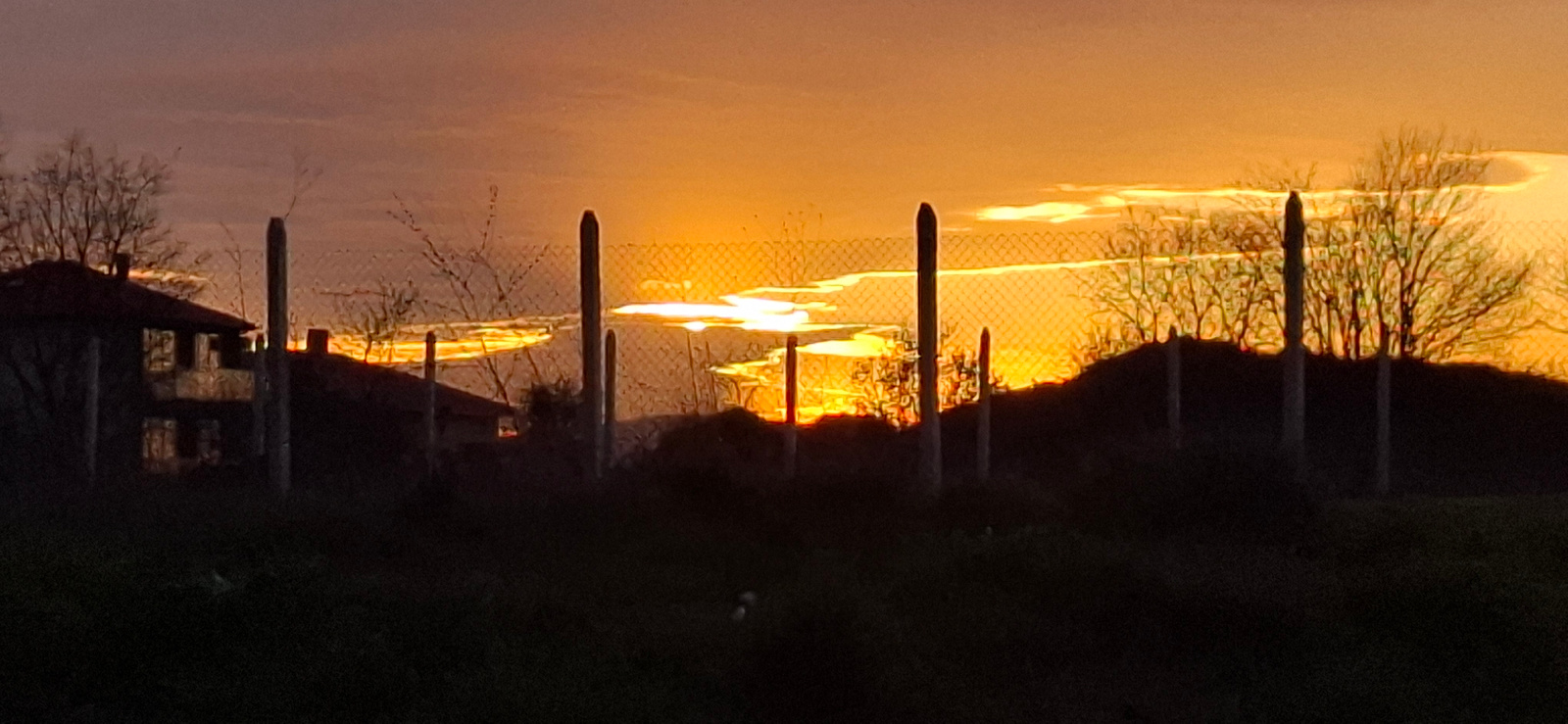 A long shot photograph was taken in Unknown, Unknown, showing a sunset with the sun low on the horizon. Silhouetted structures and objects are in the foreground. A two-story house with visible windowsβ¦read more