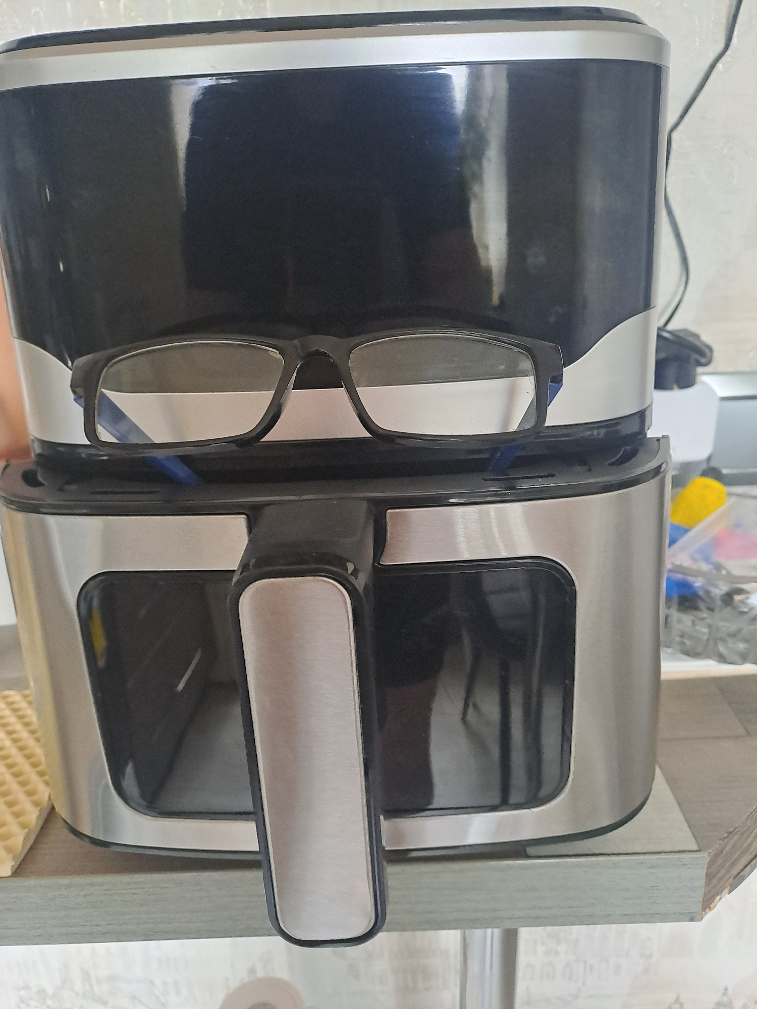 This image, originating from Elektrostal, Russia, presents an indoor scene focused on a kitchen appliance. A two-part appliance, identified as a cooking device, likely an air fryer, occupies the centrβ¦read more