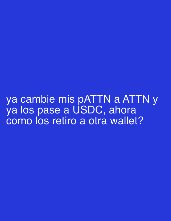 The image is a blue background with white text. The text is in Spanish and asks how to withdraw USDC to another wallet after converting pATTN to ATTN.