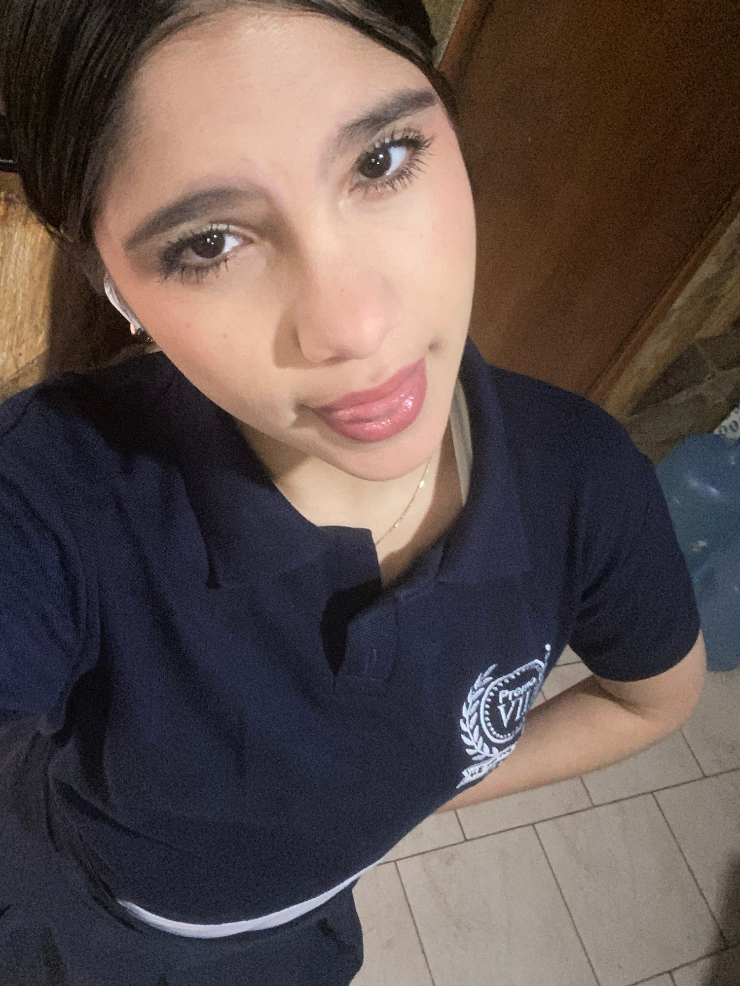 A close-up, tilted portrait shows a young woman in an indoor setting, potentially in Cotoperíz, Venezuela. She looks directly at the camera with a playful expression, her tongue slightly extended. She…read more