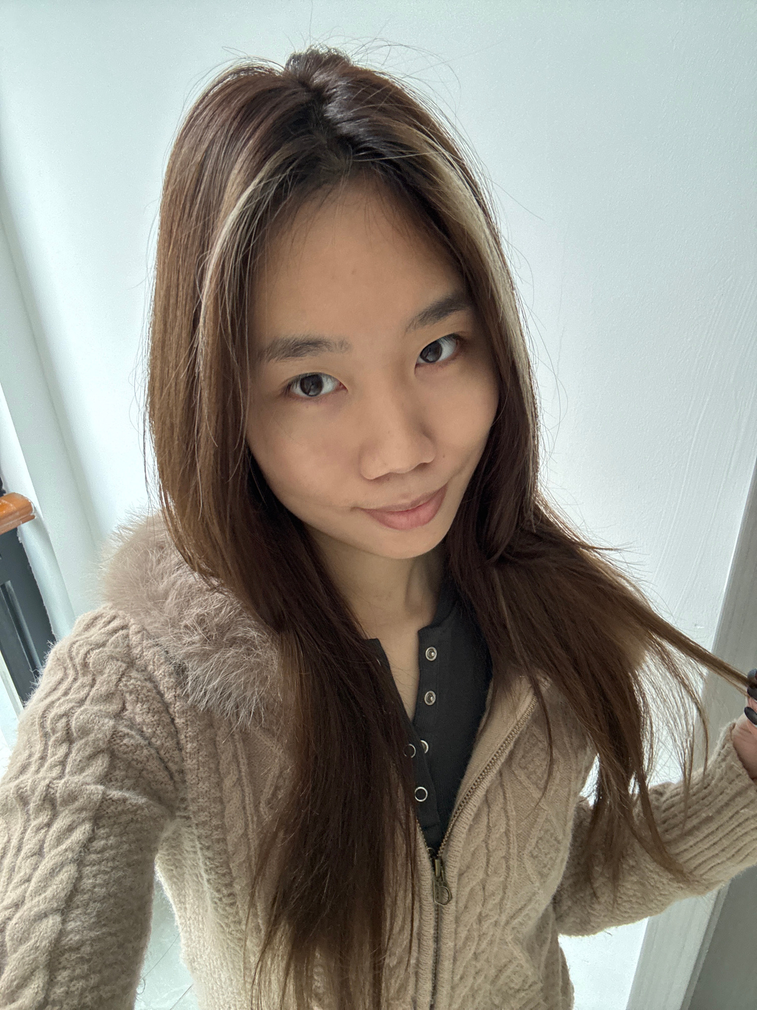 A medium close-up photograph features a young woman with long brown hair, slightly angled to the left. A strand of hair is held in her hand, obscuring part of the background. She is wearing a black to…read more