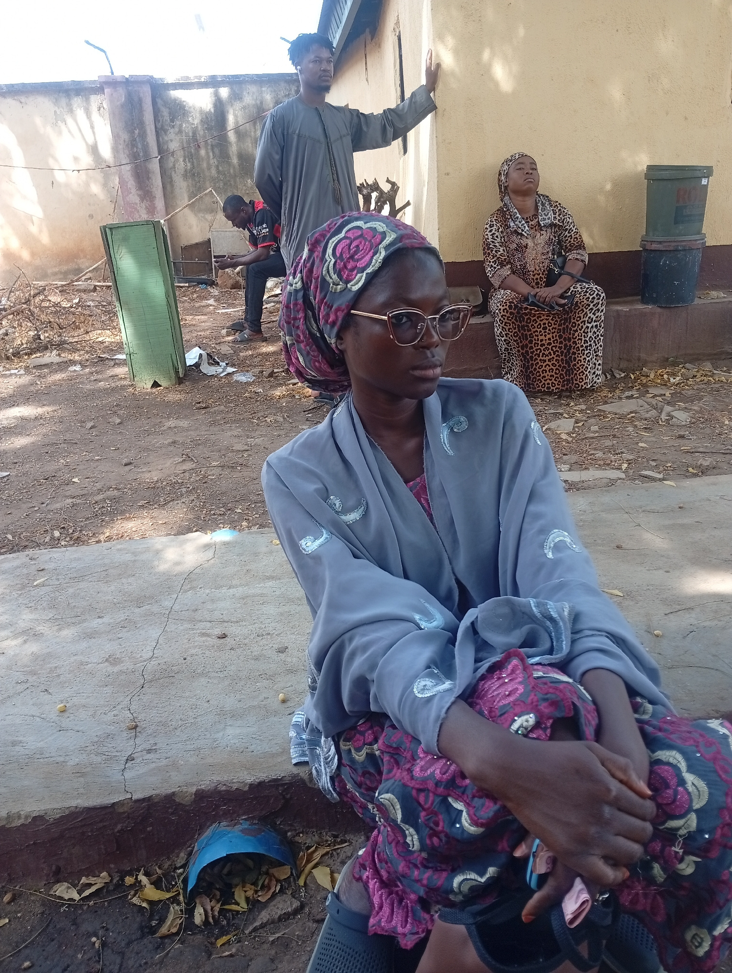 This image depicts an outdoor scene in Barden Yana, Nigeria, featuring four individuals in various states of rest or contemplation during what appears to be a sunny day. In the foreground, a young Bl…read more